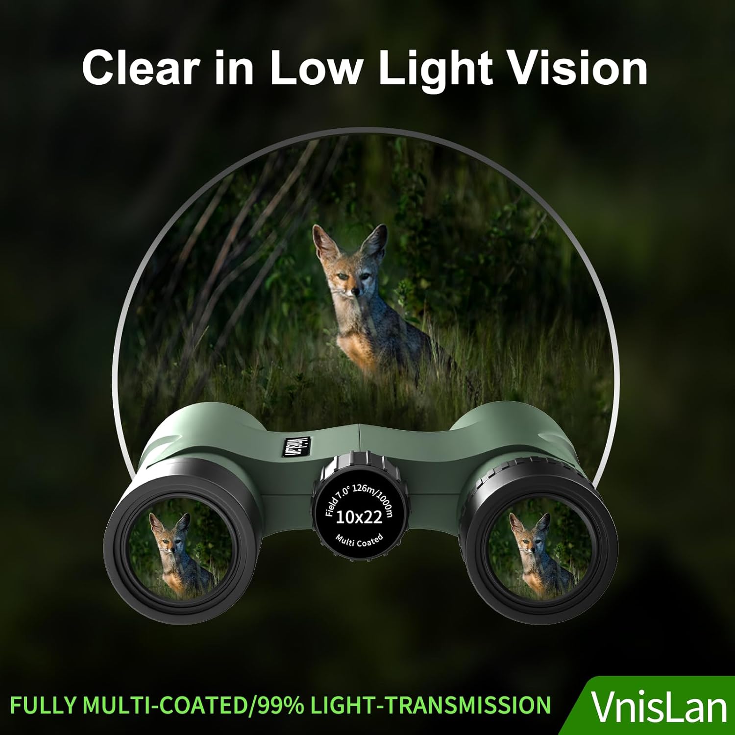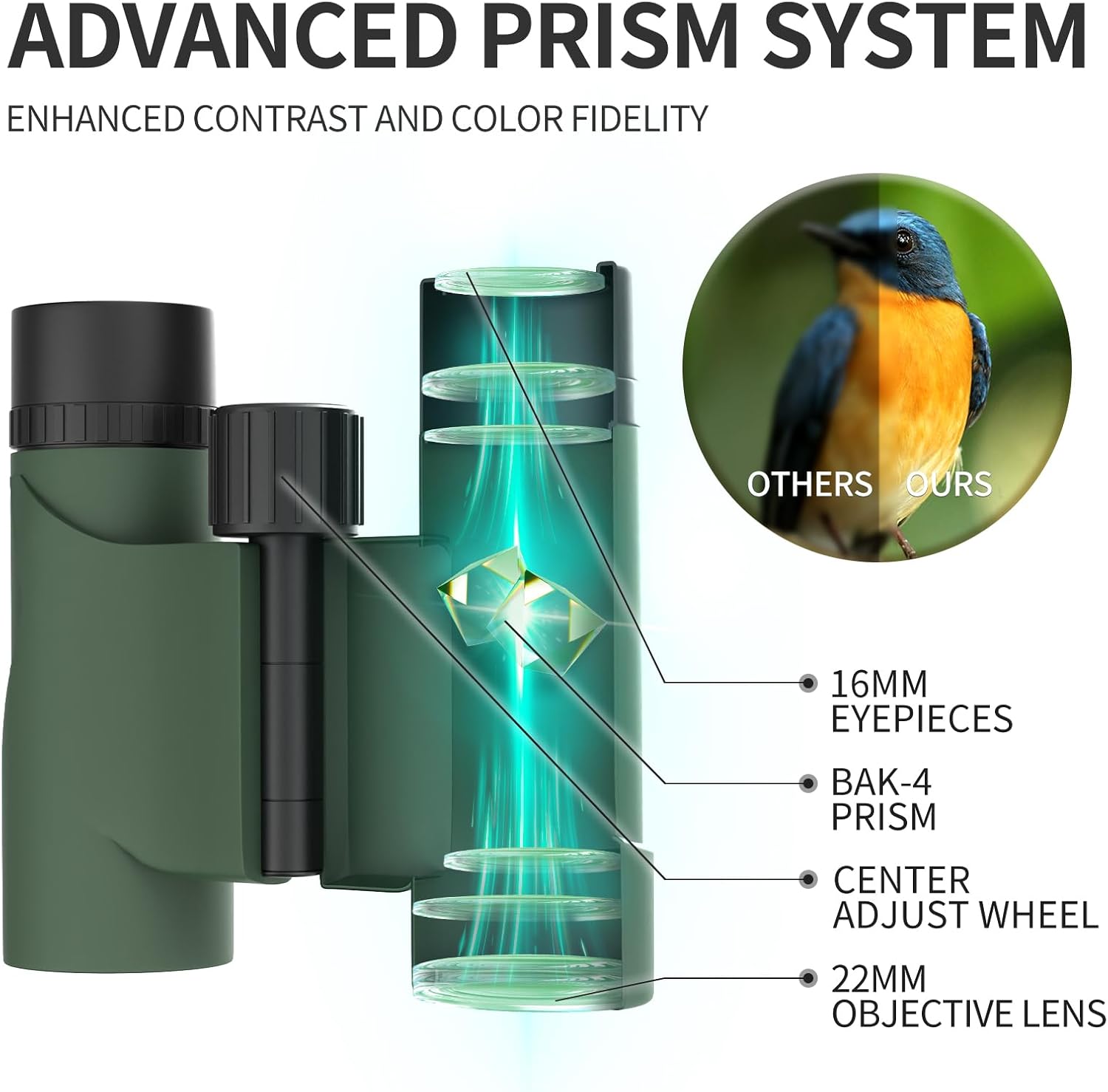 【HIGH-POWERED 16MM LARGE EYEPIECE BINOCULARS】This binoculars for adults and kids has 10x magnification, 22mm objective lens and wide field of view, 273ft/1000yds,high-powered zoombinoculars provide a razor-sharp view of the smallest details even at longer ranges, which can give youmore angles of view than other binoculars. Gives you a different viewing experience and ensuringclearer details. These binoculars deliver the best possible performance in low-light scenarios for observation.