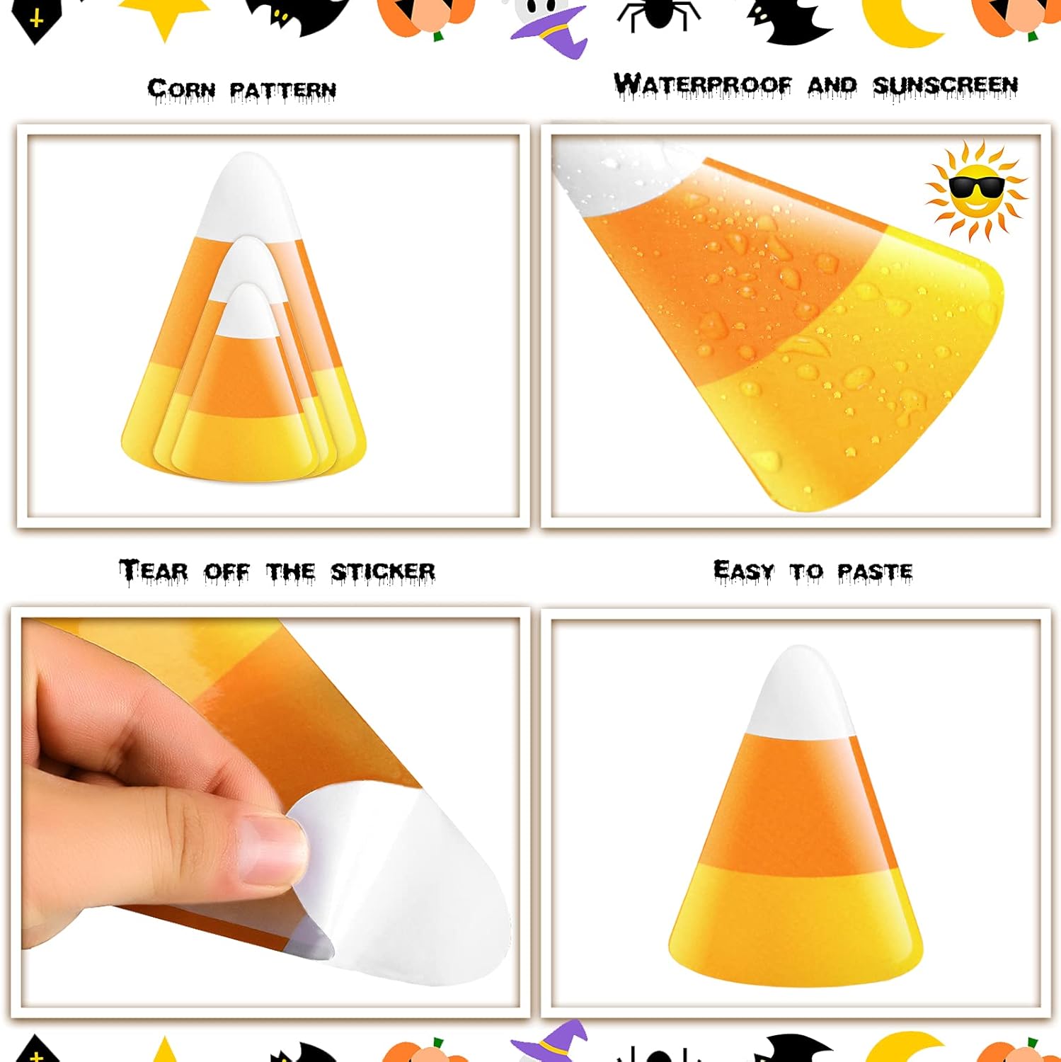 Quality material: our Halloween candy corn decal stickers are made of quality PVC, reliable and durable, not easy to break or deform, easy to paste, and easy to tear off without damaging the floor of your home, which can serve you for a long time