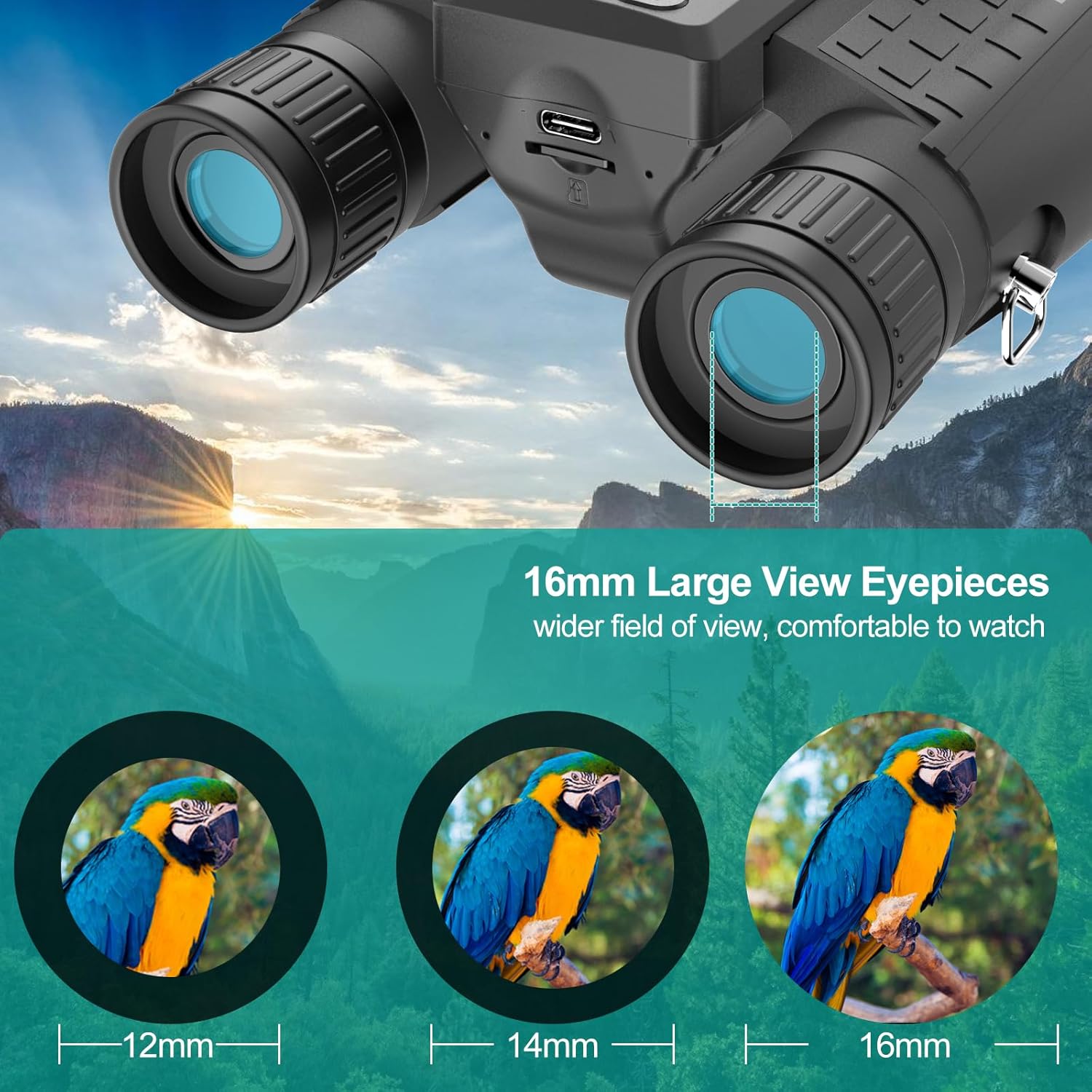 【Binoculars with Camera Built in】This binoculars feature a 2.0 inch LCD 4:3 display screen, make it easier for you to observe your targets and discover more details. It also equipped with high definition photo and video shooting capabilities, so you can capture 5MP images and record up to 1080p videos, all the files will be saved on 32GB SD card included, convenience to downloads and share the beautiful moment with your family or friends.