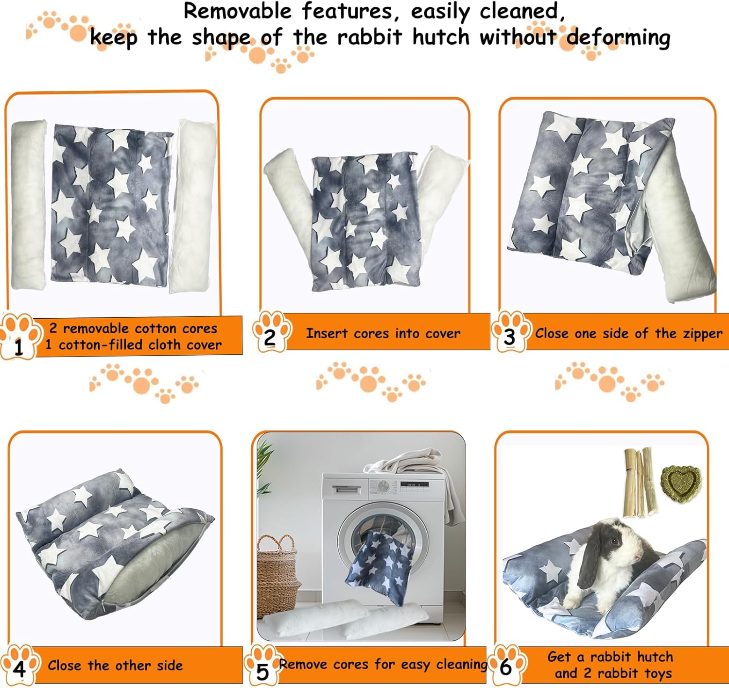 Cozy And Warm Design: Unlike Other Rabbit Bed, Amremsu Rabbit Huts Are Not Only Increased In Length And Width, But Also Thickened With Cotton To Ensure The Comfort Of The Rabbit Huts To A Great Extent Amremsu Rabbit Bed Is Filled With High-Quality, On 2 Sides Thick Cotton, The Middle Is Also Thickened With Cotton Padding To Create A Fluffy And Comfortable Pillow That Gives Your Rabbit The Feeling Of Being Wrapped In Your Embrace And Feeling Safe And Comfortable.