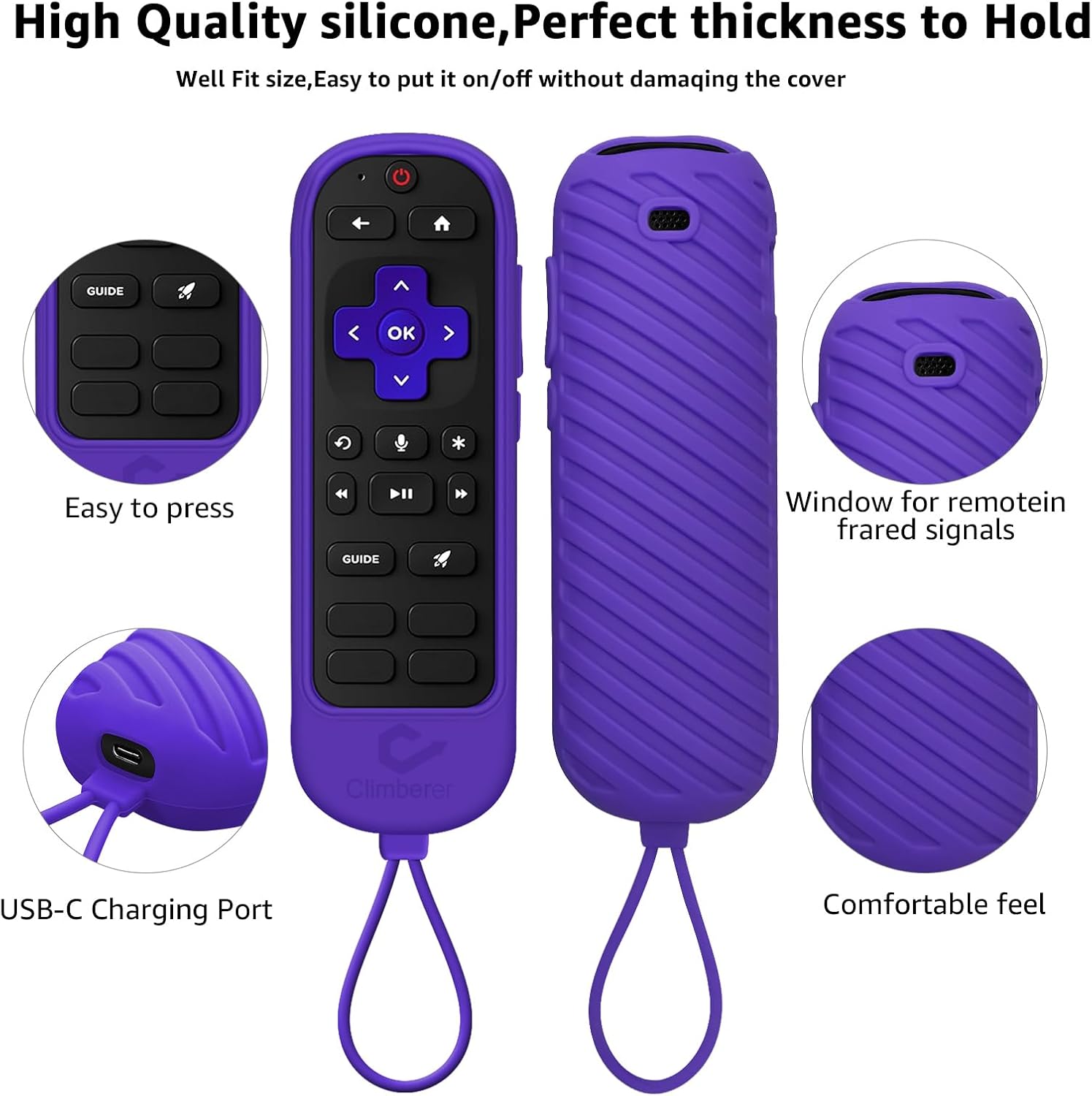 The Roku Voice Remote Pro(2nd Edition)Cover fits the newly released Ultimate Roku remote. The perfectly sized design allows you to enjoy convenient USB-C charging. Easy to see backlit buttons, plus a remote case that glows in the dark make navigating movie nights a breeze.compatible withRoku Voice Remote Pro Edition (2nd Edition). Enhance your Roku streaming experience with the Climberer Roku Voice Remote Pro (2nd Ed) Cover, a versatile and practical accessory that offers both protection and convenience. This 2-pack of glow-in-the-dark silicone covers is designed to fit snugly over your Roku Rechargeable TV Remote Control (RCB1R), providing a secure grip and preventing accidental drops. Integrated with a handy lanyard, these covers allow you to keep your remote within reach at all times. Whether you’re binge-watching your favorite series or navigating through streaming platforms, the Climberer Roku Voice Remote Pro Cover is an essential companion for seamless entertainment. Upgrade your Roku experience today with this practical and stylish accessory.