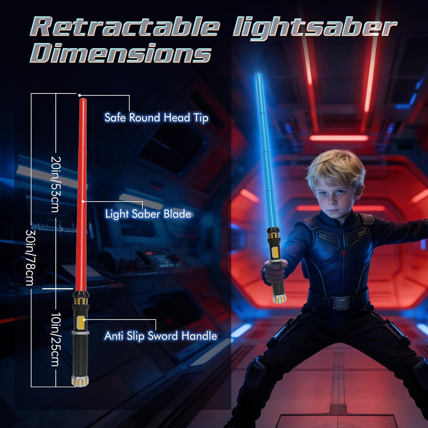 2-in-1 Set & Perfect Gift – Includes red and blue light up sabers. Packaged in an attractive gift-ready box, it’s ideal for parties, cosplay, holidays, and birthdays. This set makes an excellent Christmas gift for children.