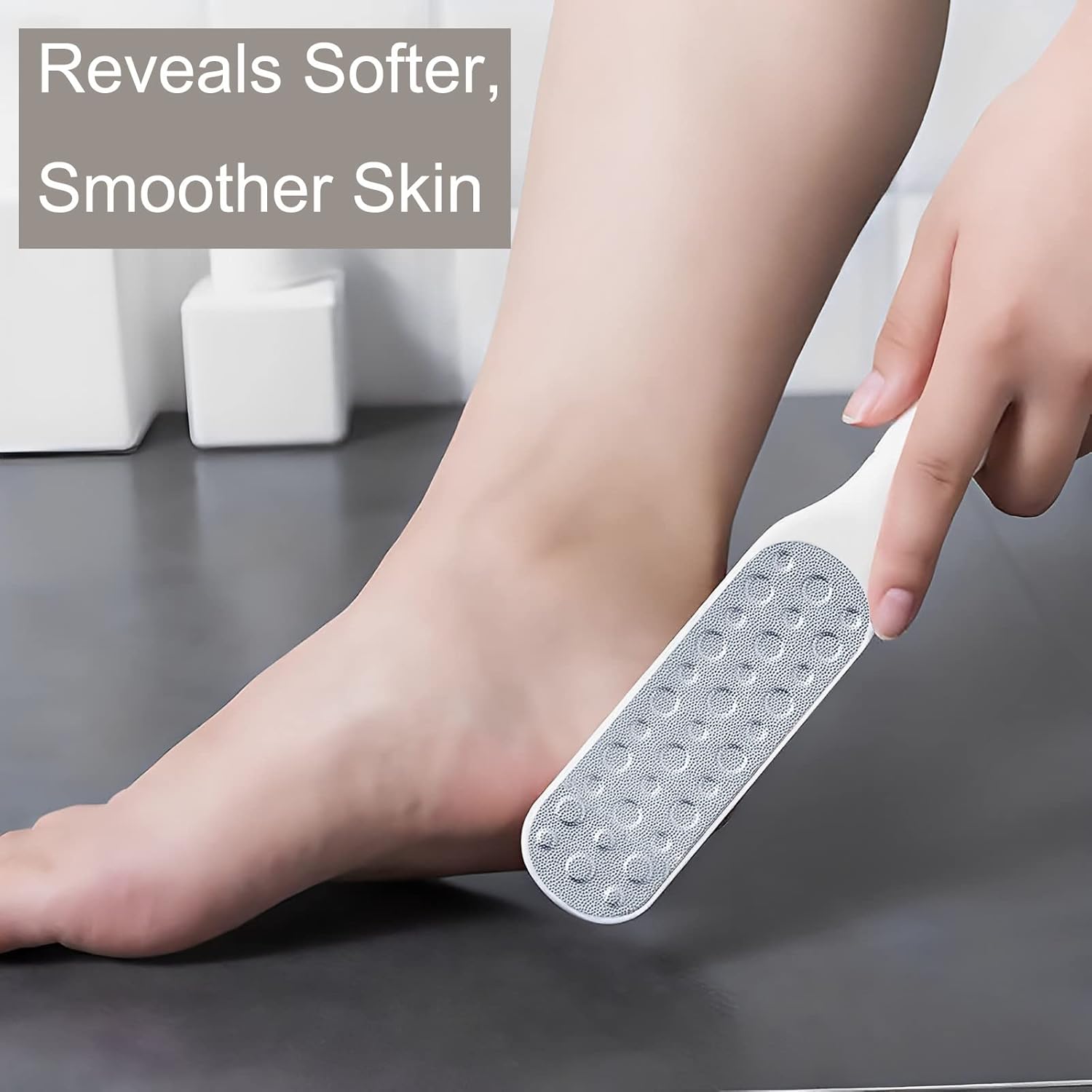【COARSE AND FINE GRIT】Coarse grit side works to shave off layers of dried callous. The fine grit side helps to buff away dry skin and smooth out rough patches. No longer need a foot scrubber or basic pumice stone, for this double-sided foot file will give you callous-free feet any time!