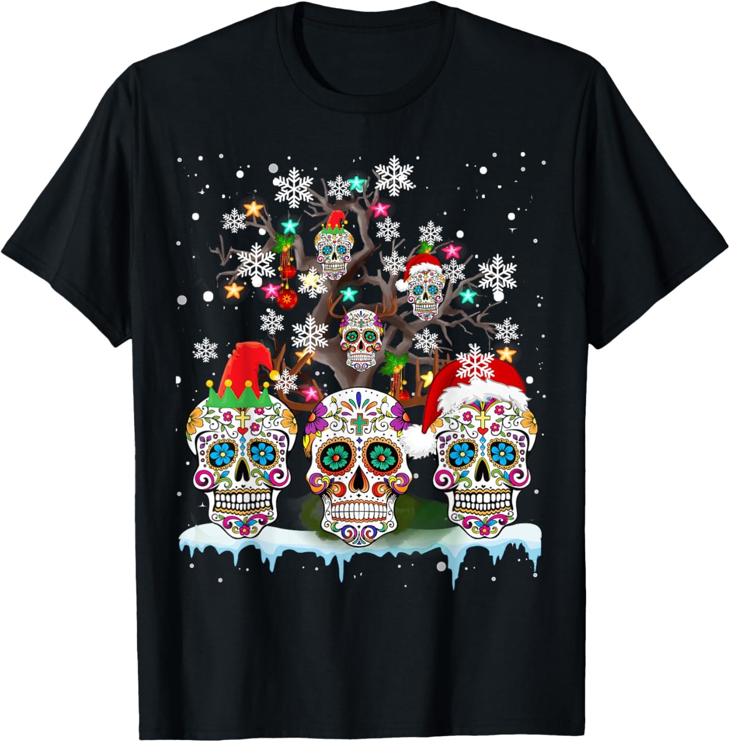 Christmas Sugar Skull On Tree Funny Santa Sugar Skull Gifts T-Shirt