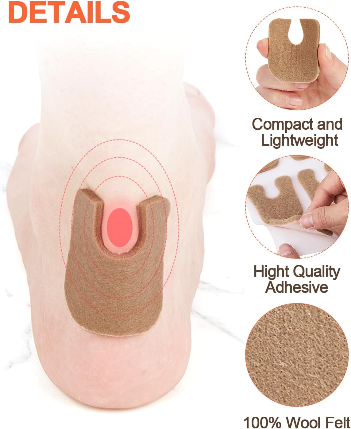 They are made of soft, medical-grade felt material that is comfortable to wear and effectively reduces friction between sensitive areas of the foot and socks and shoes, relieving pain and preventing calluses from forming and protecting current calluses.