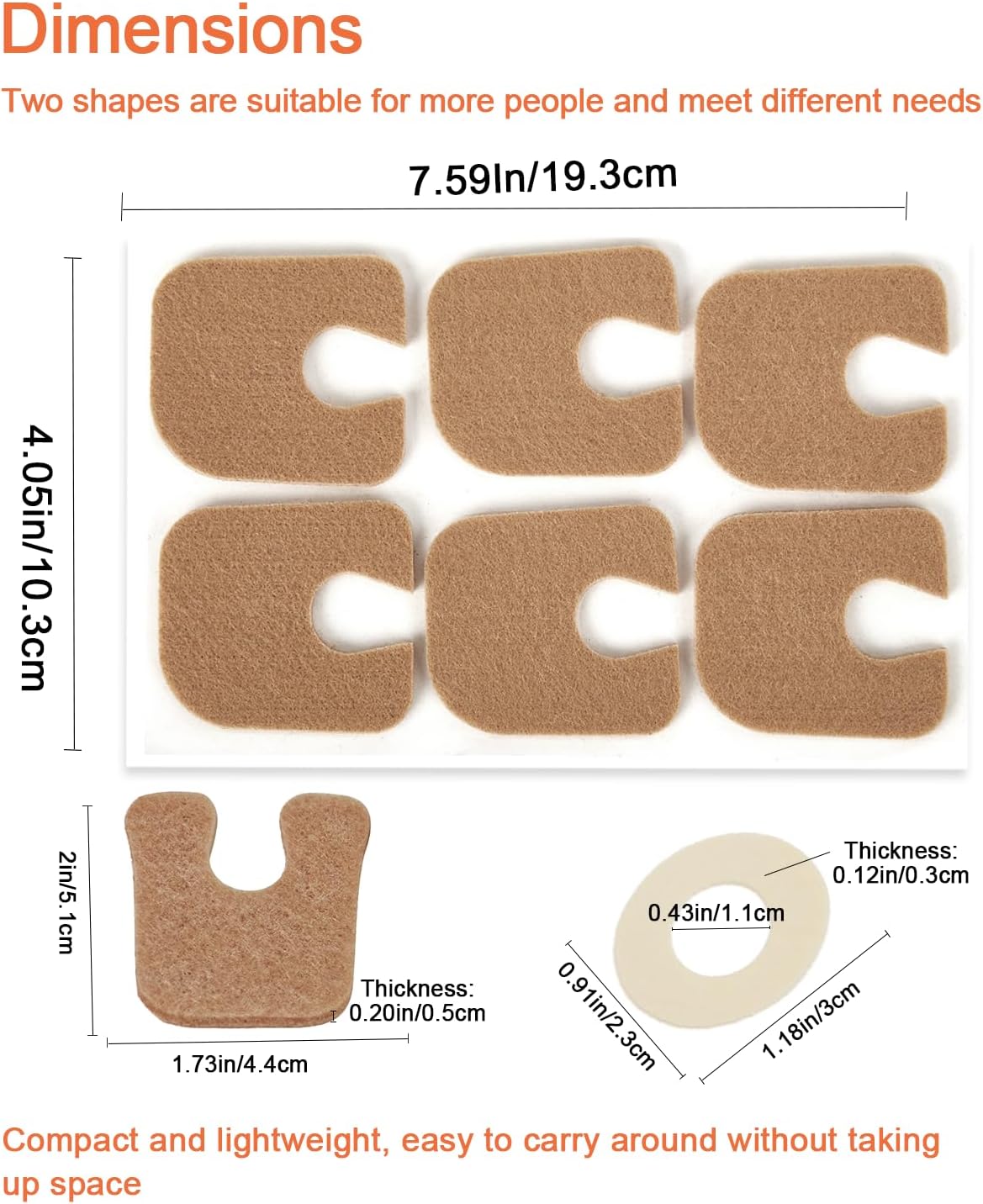 These callus pads package contains 24pcs U-shaped felt callus pads, 30 pcs oval shape corn cushions. Enough quantity to meet your daily needs and replacements
