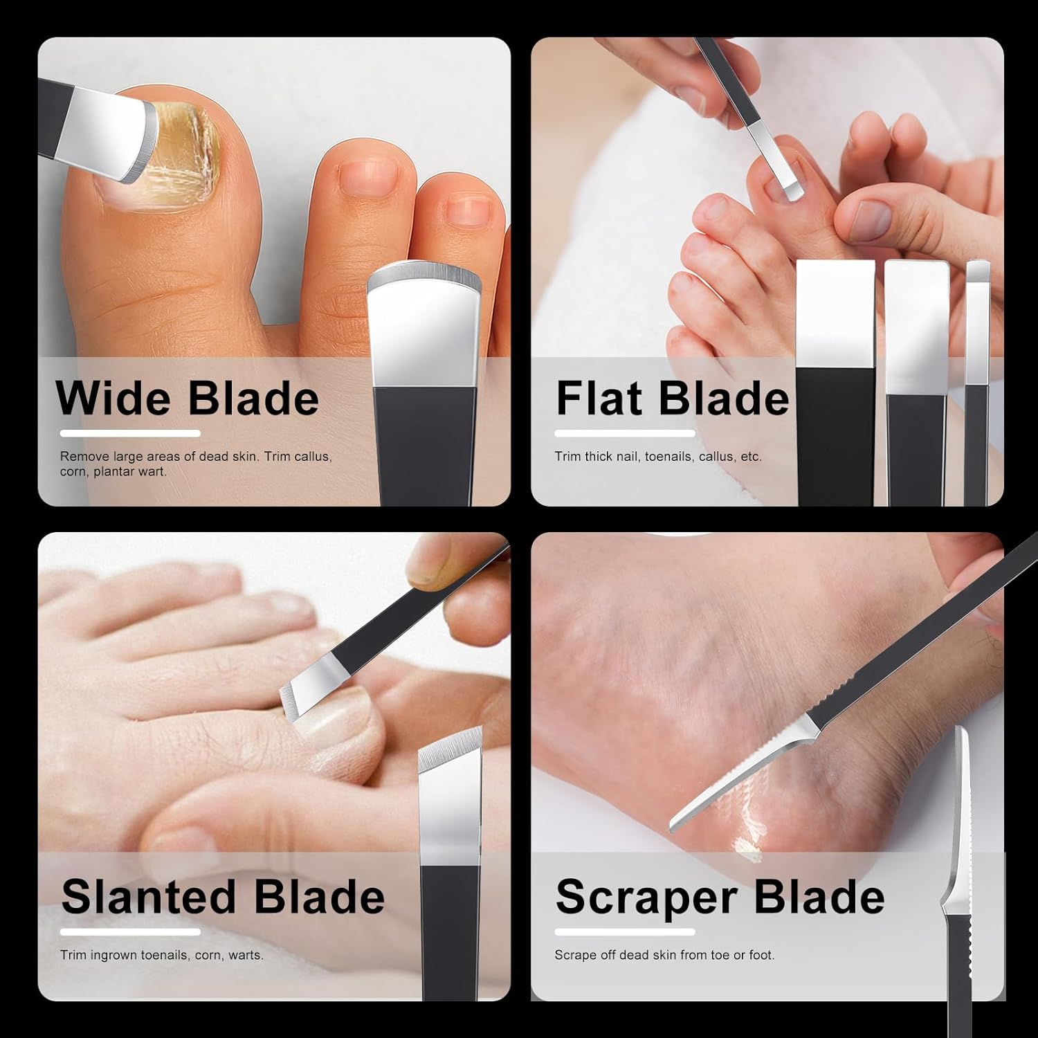 Ergonomic Design: Designed with comfort in mind, each tool features a non-slip, ergonomic handle. Enjoy precise control and reduced hand fatigue during every use, making pedicures effortless.