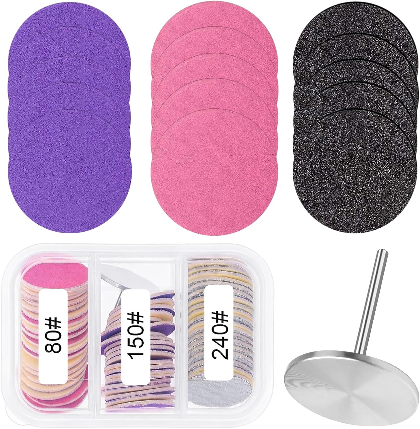 【Replaceable Sandpaper Discs Set】The sanding disc nail drill bit set comes with 72pcs sandpaper discs with 1pcs metal nail drill bit, and 3 different sizes in 3 colors #80 coarse grit #150 medium grit #240 fine grit, available in different grits, you can choose the corresponding pedicure disc according to different degrees of calluses to suit your preference and needs