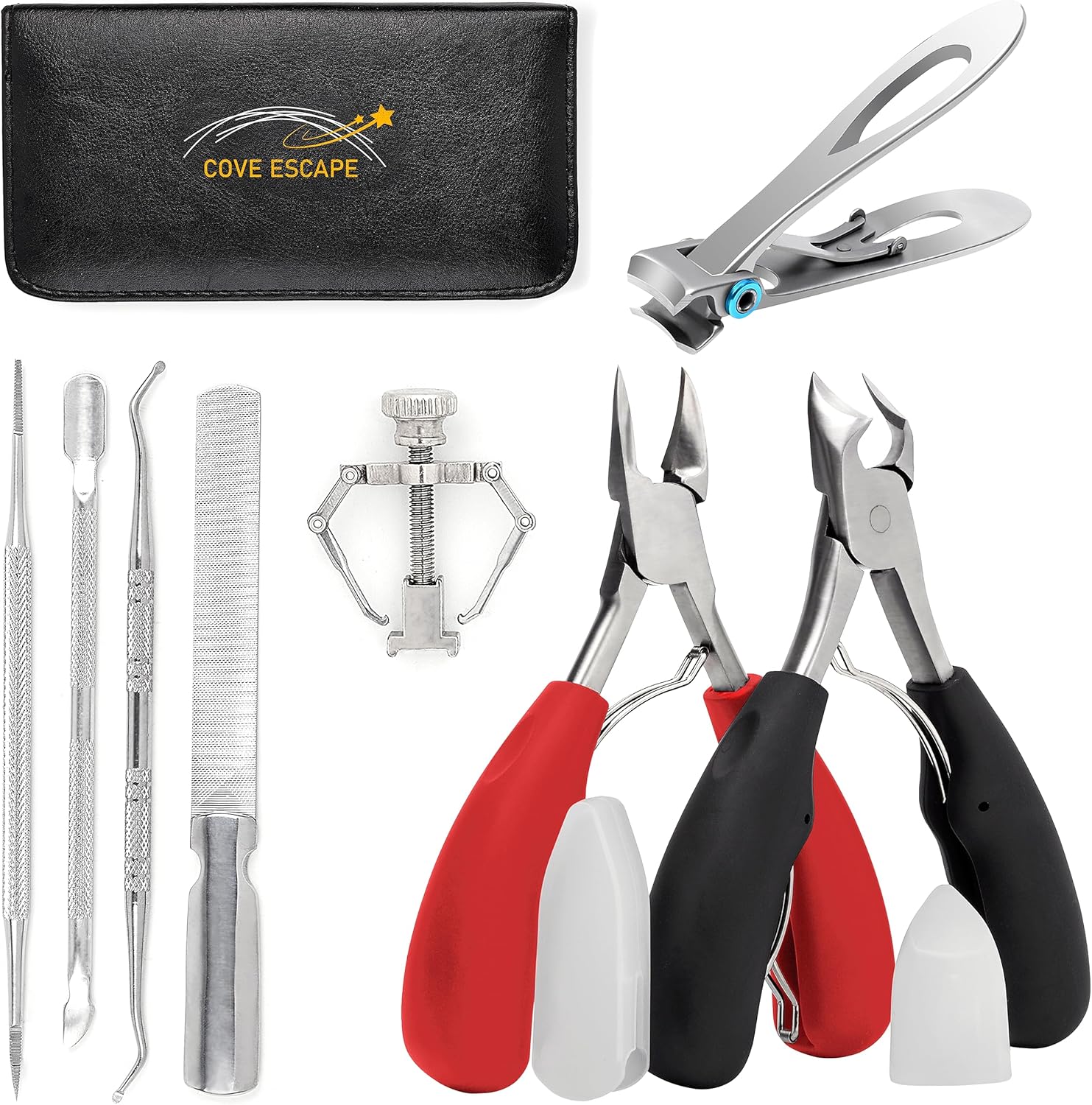 Curved Toe Plier Made of Surgical Grade Stainless Steel: This nail clipper for women 25 degrees sharply curved plier is available on hand to offer a nice arc form and to shorten thick toenails length, Cove Escape 8 toenail tools set is fabricated from heavy-duty surgical grade stainless steel with nice finishing. It is rust-proof and smooth to sanitize. Just wipe off the complete blade with sanitized wipes and dry it with a microfiber towel