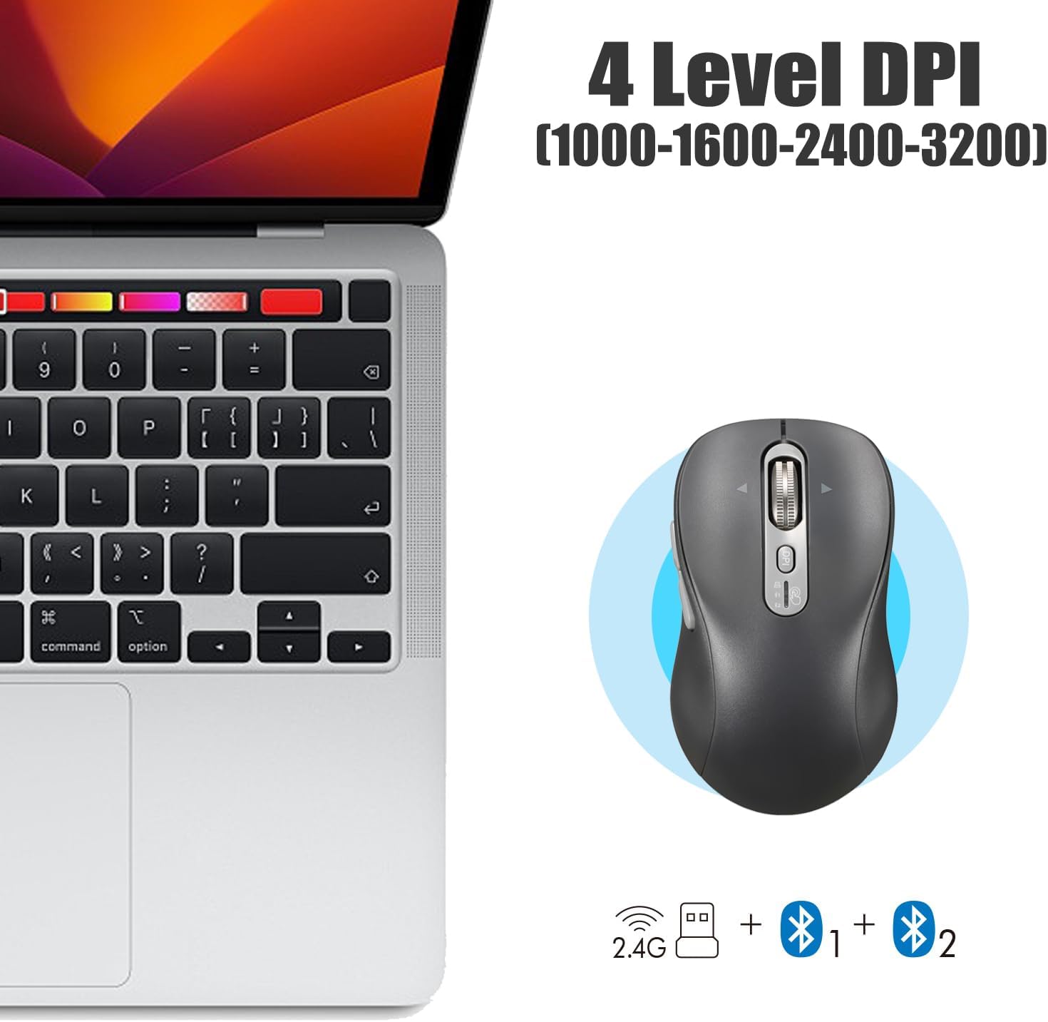 Precision Control : The wireless mouse offers 4 adjustable DPI settings (1000/1600/2400/3200), enabling you to tailor the speed to your preference. The whisper-quiet buttons ensure a peaceful working environment.