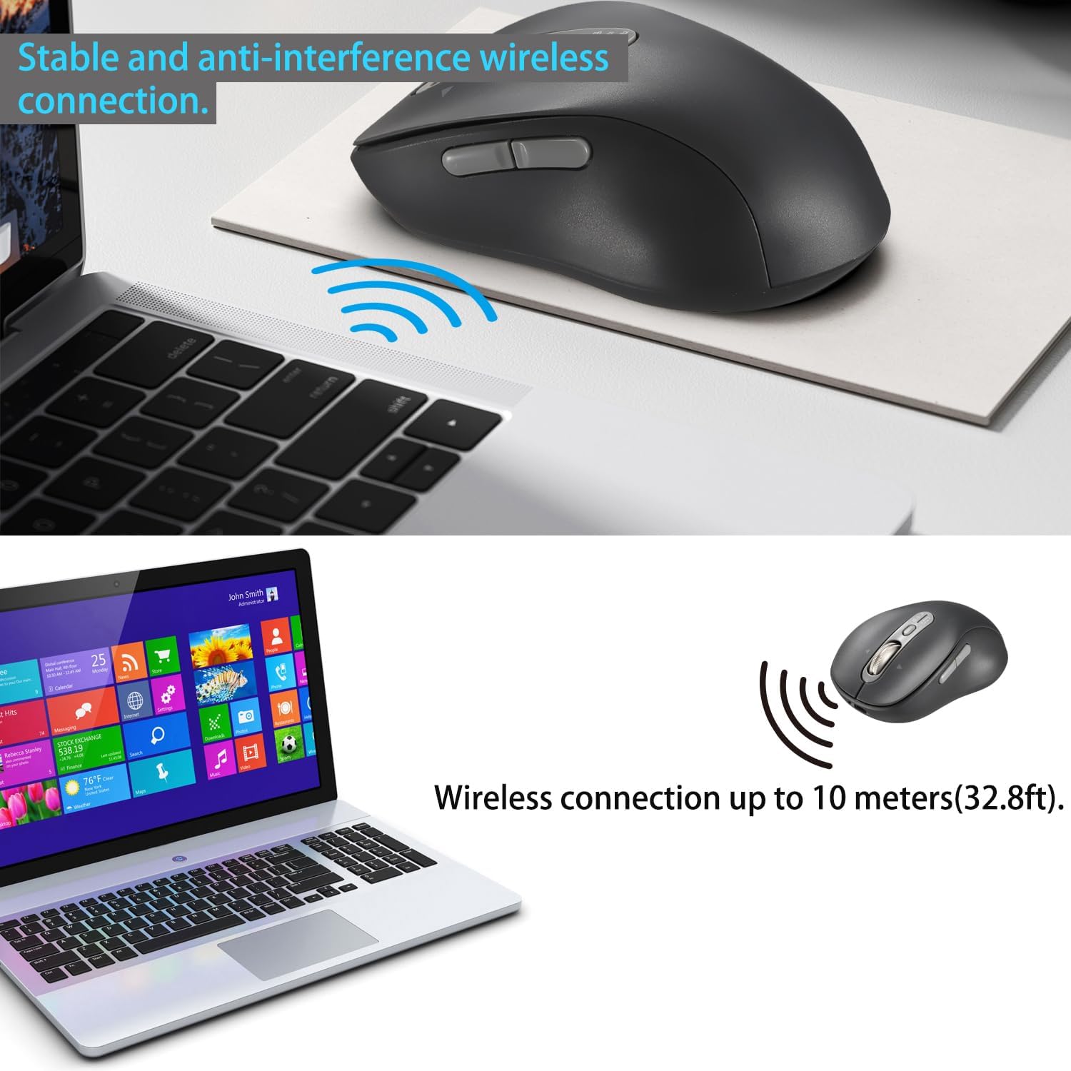 Reliable Signal Connection : CITLLA wireless mouse provides a stable wireless signal connection. It’s equipped with a 2.4G USB wireless receiver and two Bluetooth channels, which can be allocated to three separate devices or used to establish different connections on a single device.
