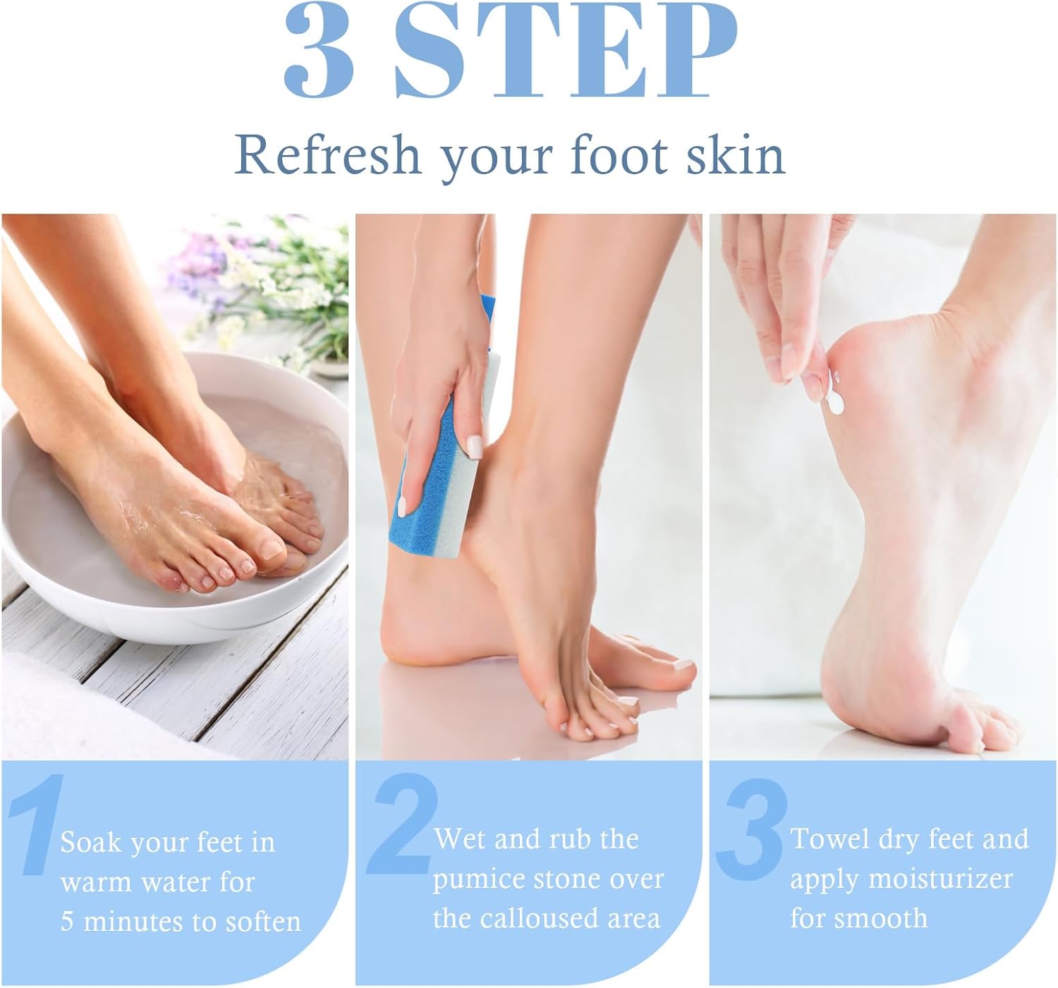 【Package List】You will receive 2 blue pumice stone, 1 stainless steel pole, 1 user manual. This pumice stone for feet is an natural, effective pedicure tool to give you smooth, supple feet