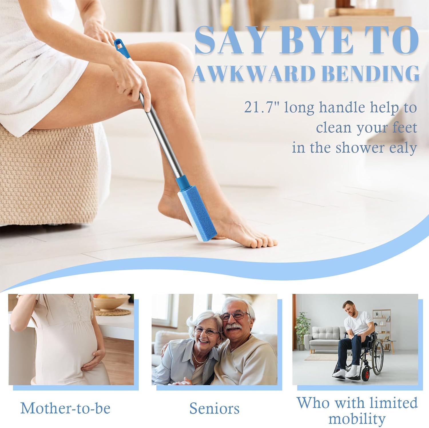 -You won’t need to bend down awkwardly to clean your feet in the shower. Foot pumice is suitable for pregnant women, older people and people who have difficulty moving around.