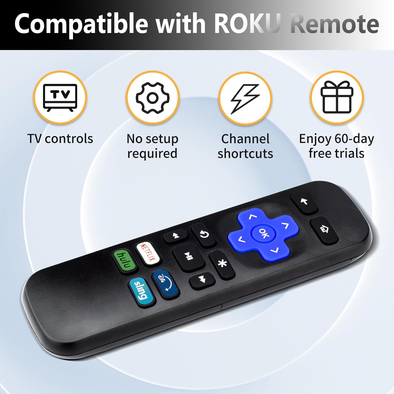 【NOTE: NOT for any Roku Stick or TV】⚠️Only compatible with Roku Express, for Roku Premiere, for Roku Box, for Roku Player, for Roku 1 2 3 4.❌NO headphone jack. ❌NO pairing button. ❌NO volume control. ❌NO voice search. ❌NO power button. ❌If your original remote has a pairing button, please do NOT buy it. It does NOT have the headphone jack to plug in your earphone