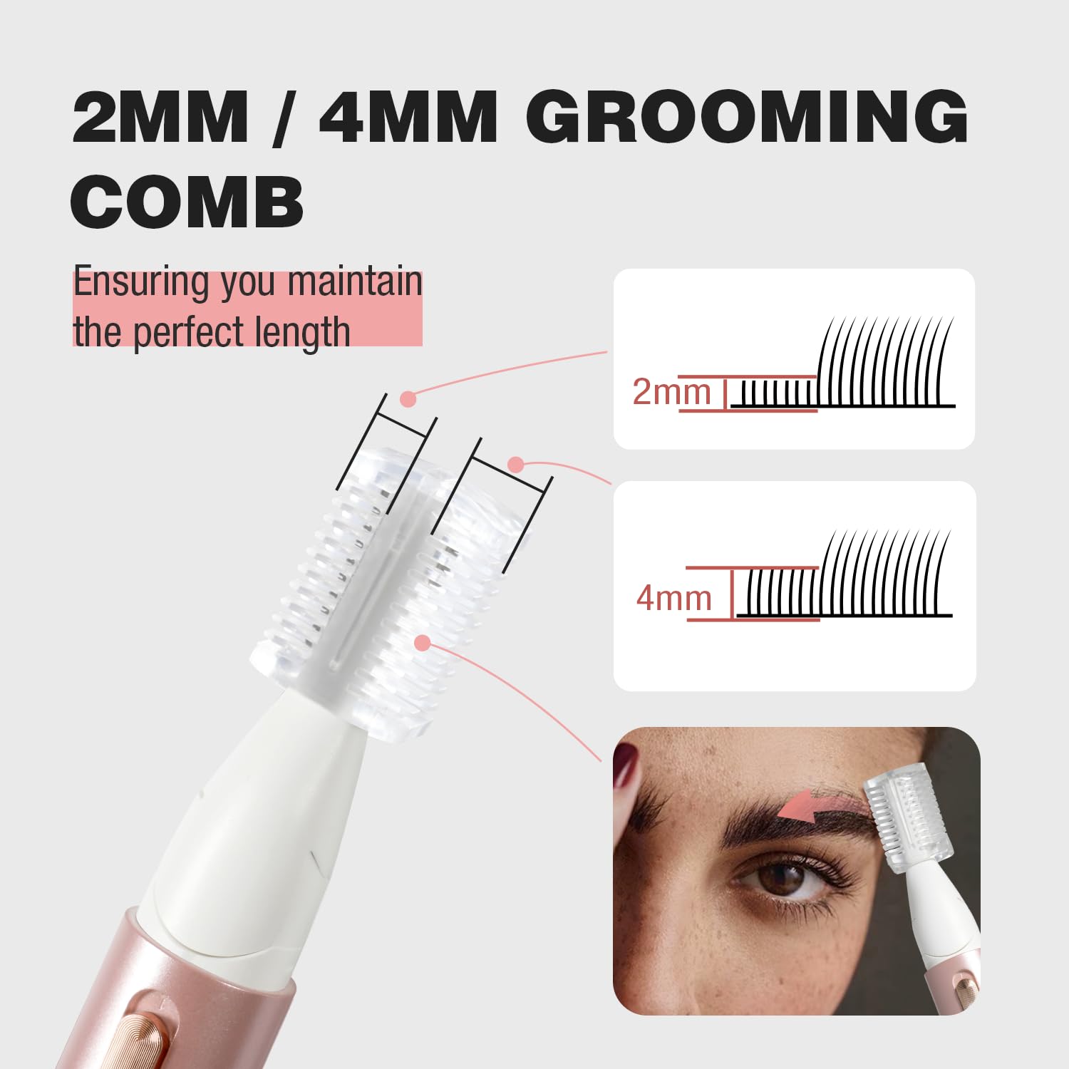 【Options for Personalized Trimming】Our facial hair trimmer comes with a limit comb (4mm, 2mm) to give you personalized trimming options. You can choose the length of the comb as needed to trim your eyebrows to your ideal length while avoiding possible over-trimming. Not only does this tool take care of your beauty needs, it also helps you create your own beautiful style.