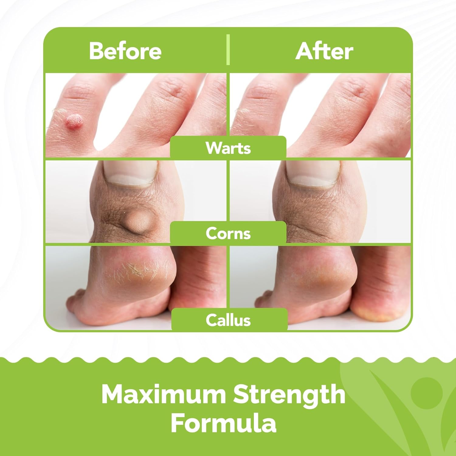Salicylic Acid Formula: Our liquid formula is designed to support the removal of foot warts, common warts, flat warts, corns, and calluses. Suitable for all ages and skin types.
