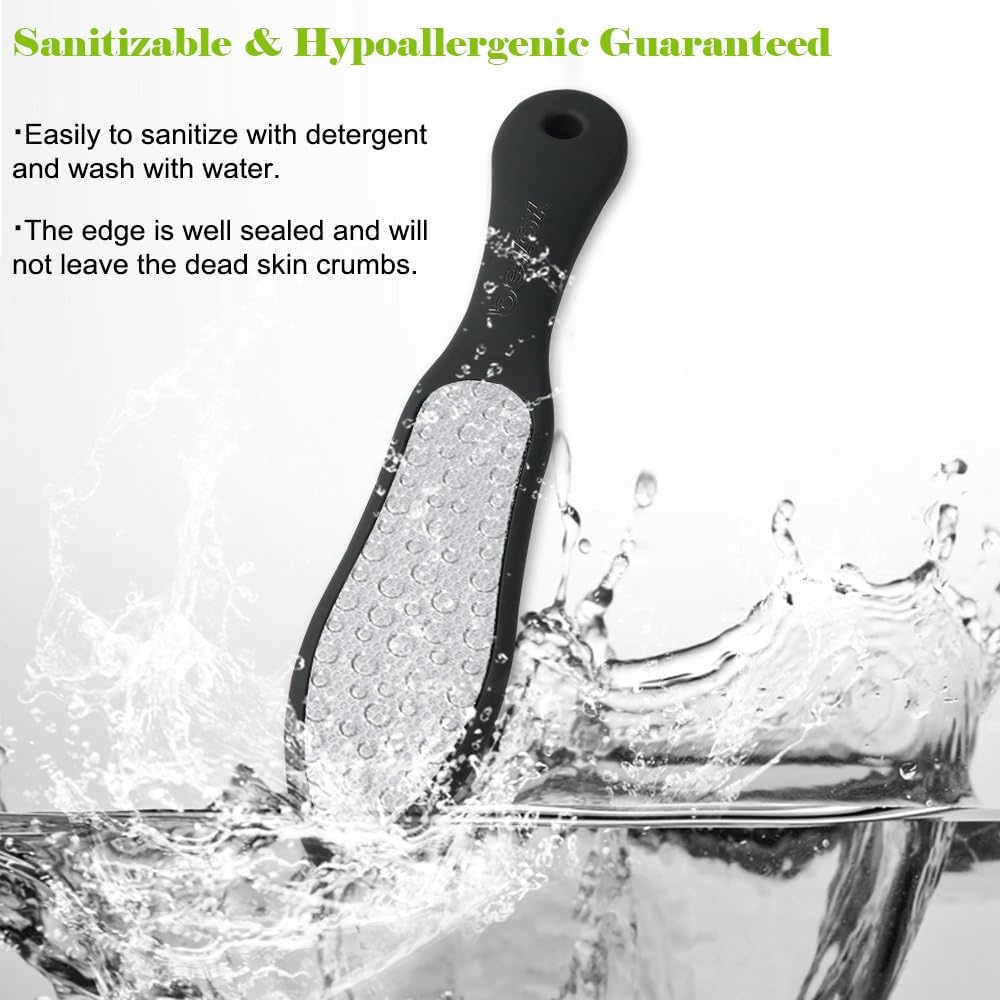 EASY TO CLEAN AND HYPOALLERGENIC: Made from hypoallergenic materials, our foot scrub heel file is safe for all skin types. It cleans easily and maintains hygiene, making it a sanitary choice for your foot care needs.