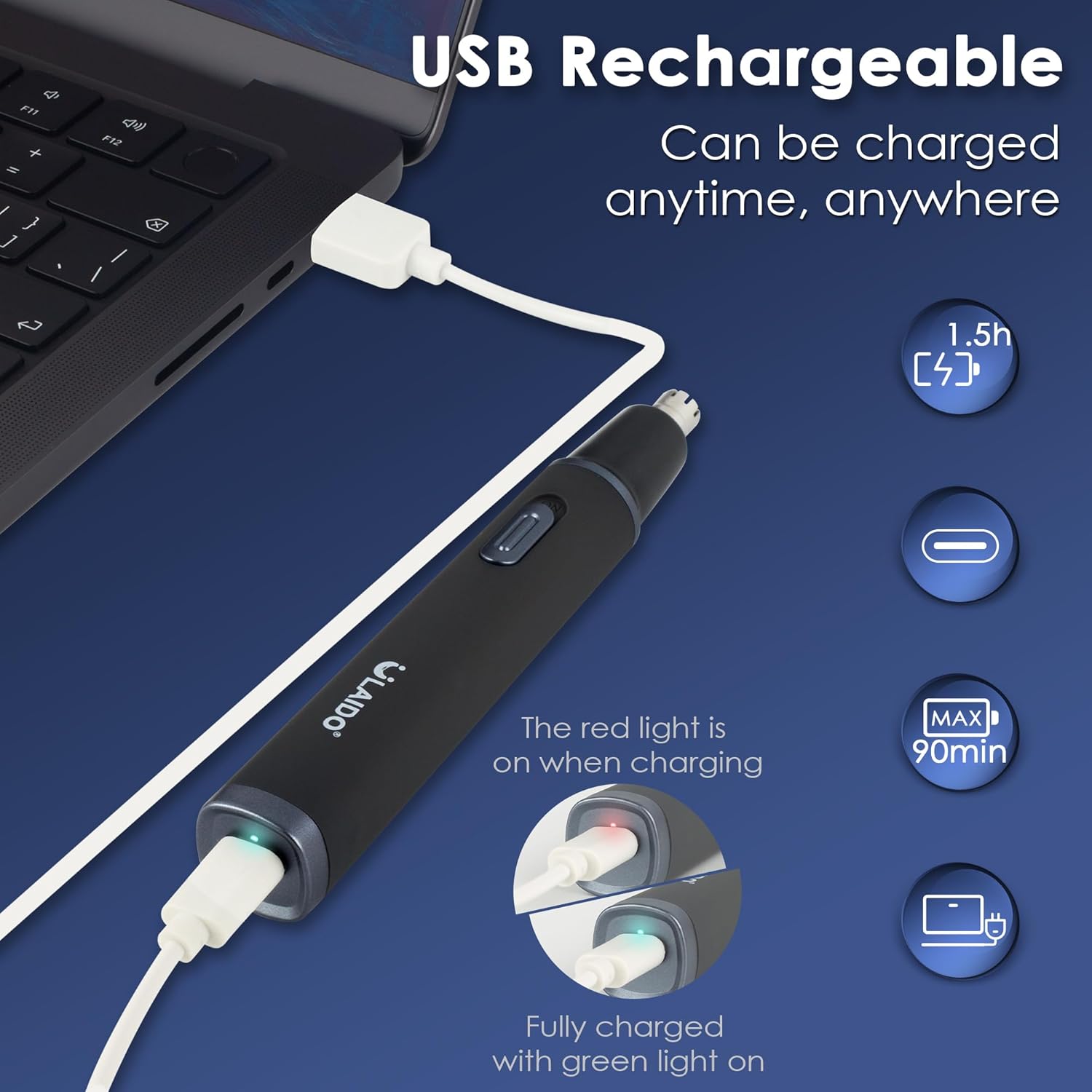 LONG LASTING RANGE & LOW NOISE MODE: The outliner trimmer for men adopts advanced charging technology, you can enjoy long-lasting use with a single charge (fully charged in about 1.5 hours, can be used for 30 days) Say goodbye to frequent charging troubles, and the USB-C charging port prevents the risks of over-voltage, over-charging, and short-circuiting, which ensures safe charging. Working noise is less than 50db, you can use the eyebrow trimmer freely without worrying about the noise to your family.