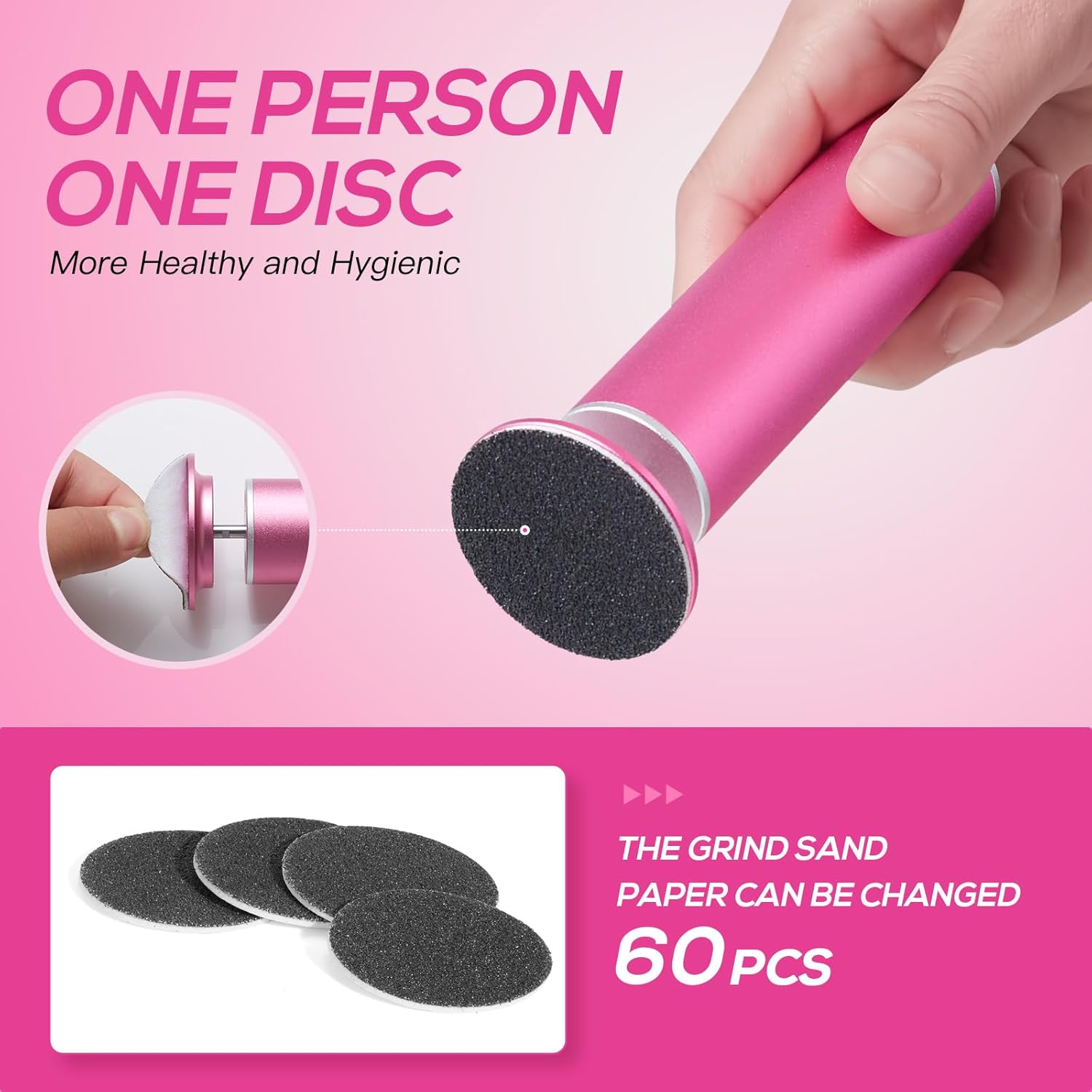 【Easy to use】: The electric foot file’s simple and user-friendly design, coupled with a convenient power adapter and 60Pcs Replaceable Sandpaper,One pad per person, to avoid bacterial infection, safe and hygienic!makes it an ideal tool for easy at-home care