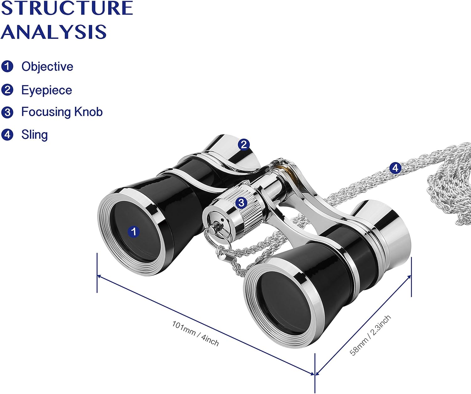 25mm Objective Lens and 3X theater binoculars with optical glass enhance image clarity, which can bring the scenery detail to your eyes.