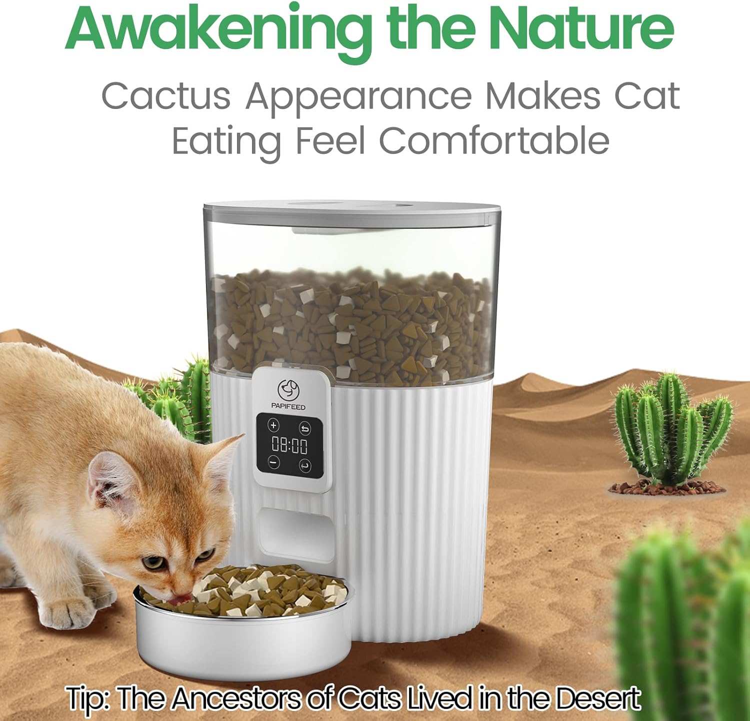 Cordless Use : What pet does not love to chew the power cord? Why not try to use it off the power cord? Thanks to the ultra-low power consumption of the Cactus Automatic Cat Feeder, you can run a stable feeding schedule over a long period of time while using only batteries. It can be flexibly placed in a cage or under a cabinet without relying on any external conditions (WiFi coverage, WiFi signal, power cord, etc)