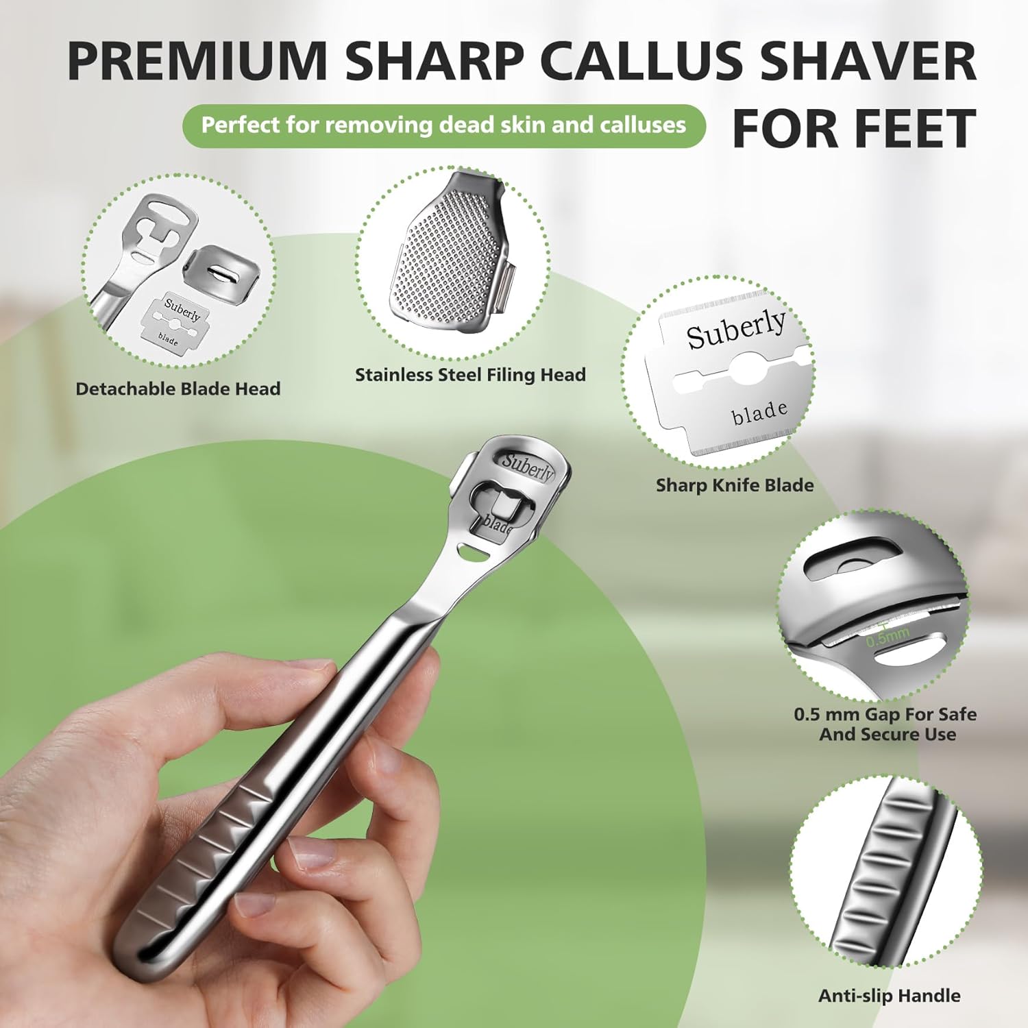 DURABLE CONSTRUCTION – The callus shaver is crafted from premium stainless steel for long-lasting use. Callus shaver which can lightly remove any kind of dead skin, cracked callus also can prevent oxidation, corrosion, and rust. A 0.5mm gap between the blades allows you to scrape off dead skin without worrying about hurting live skin.