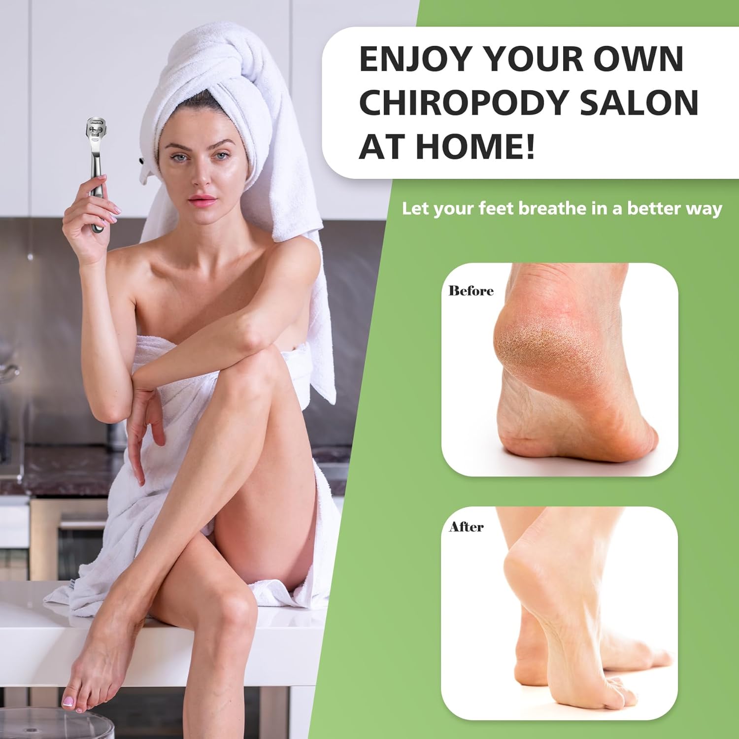 PRECISION AND CONTROL – The ergonomic comfort grip handle ensures you have full control while using the callus shaver for feet. Its non-slip design fits comfortably in your hand, providing stability and precision as you glide the shaver over your feet.