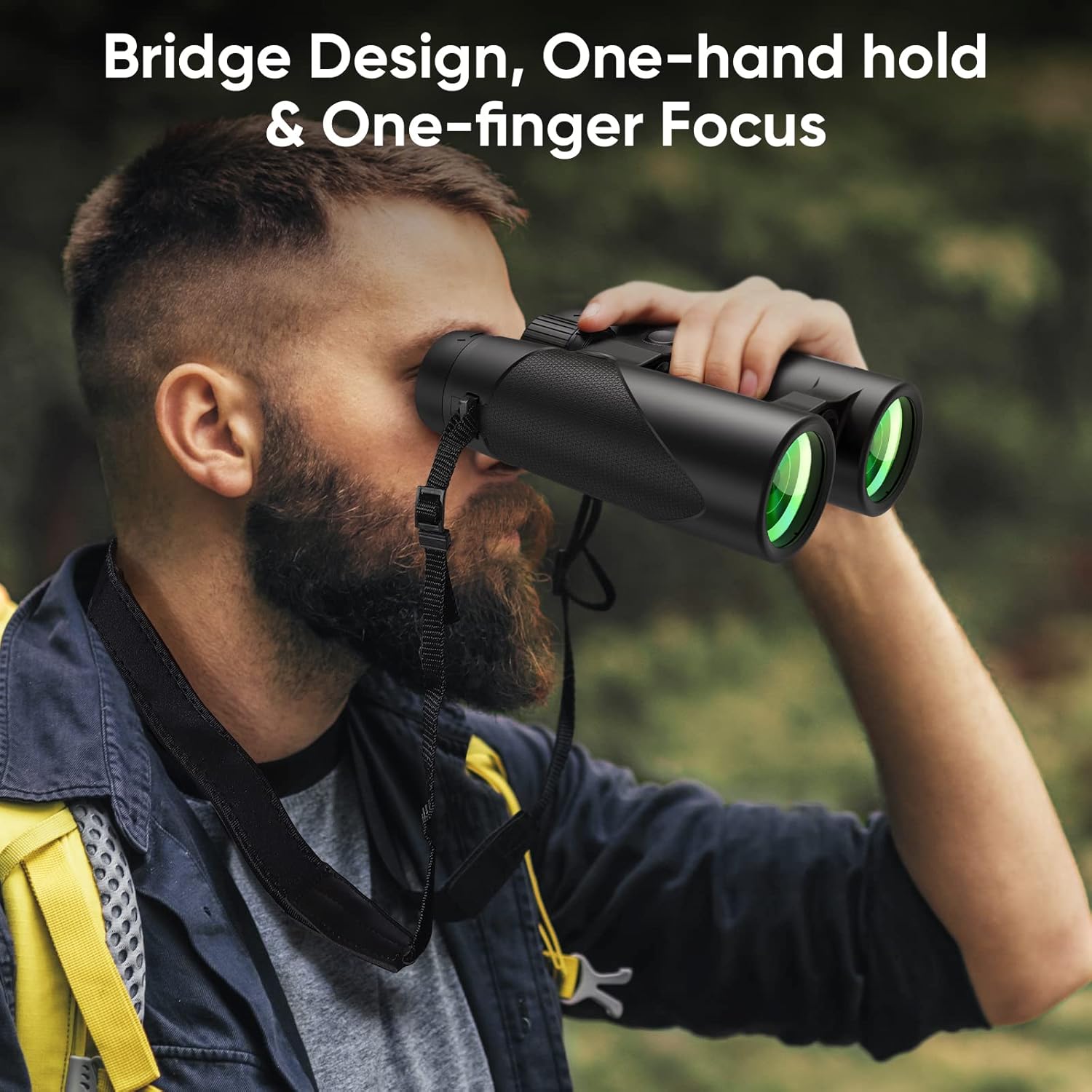 Indoor and outdoor waterproof (up to 1m/3.3ft for 30 minutes) birding binoculars: with close focus distance at 10ft/3m, the folding high powered binocular suitable for watching small animal / insects in your backyard, super light with 1.45lb, ideal for , hiking, astronomy, sky gazing, stargazing, eagle watching, spotting wildlife, or outdoor sports for long range. Nitrogen purged, preventing internal fogging of the lenses, gives you high resolution images in all weather conditions