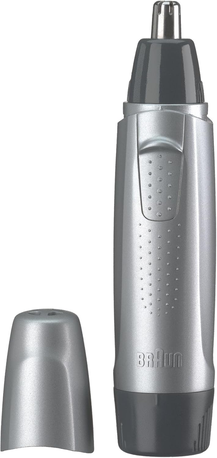 Braun Ear&Nose trimmer. Efficient and safe ear and nose hair removal. Accurately trim ear and nose hair without pulling or tugging. The high-performance circular blade system guarantees the accurate removal of ear and nose hair without pulling or tugging. The Braun Ear&Nose trimmer is washable for easy cleaning under running water. AA battery included.