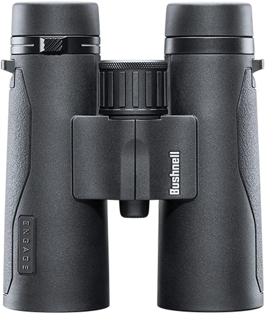 The Engage X 10x42mm Binoculars deliver quality glass in a lightweight package. These binoculars are IPX7 waterproof rated, and have Bushnell’s exclusive molecularly bonded EXO Barrier for a clear image no matter the weather