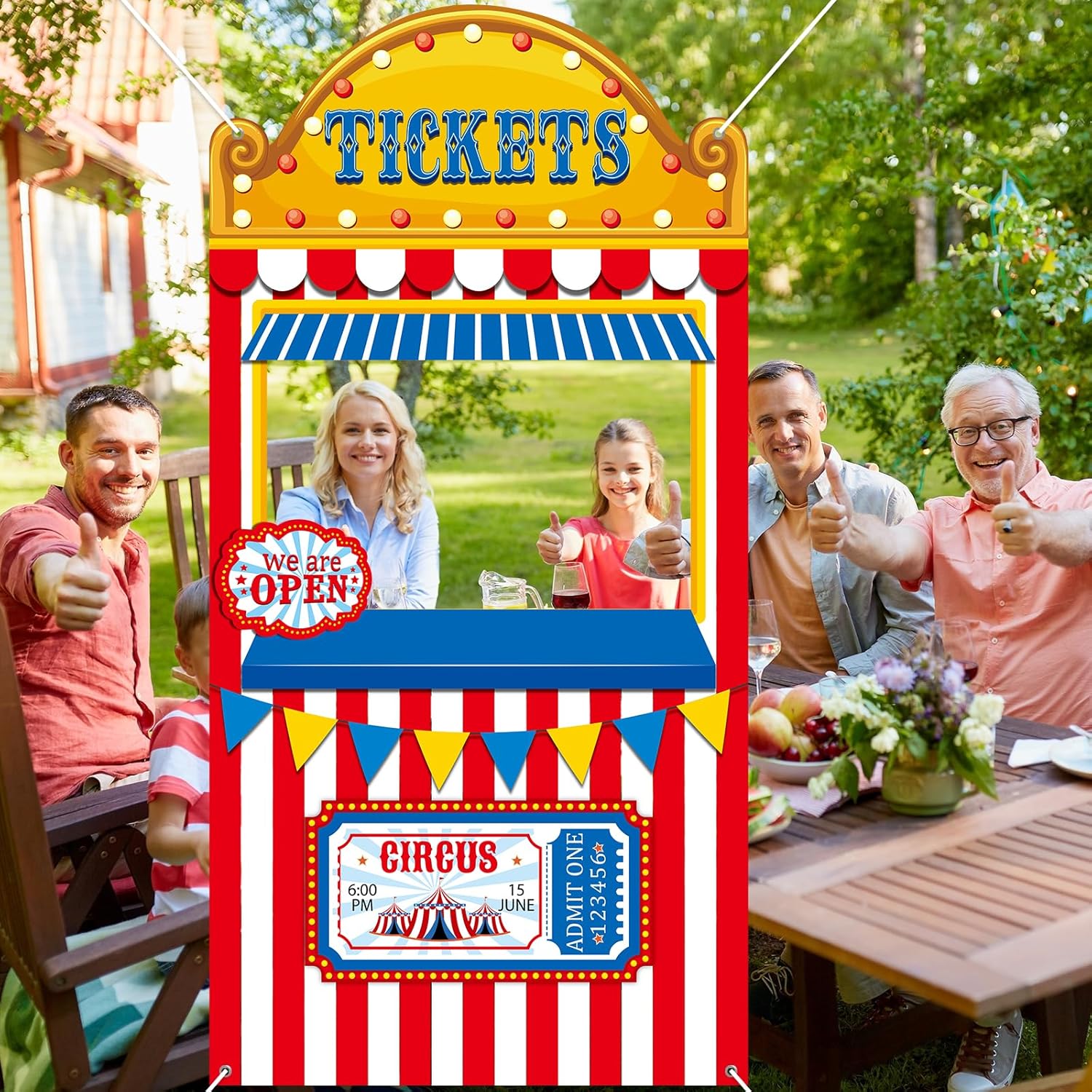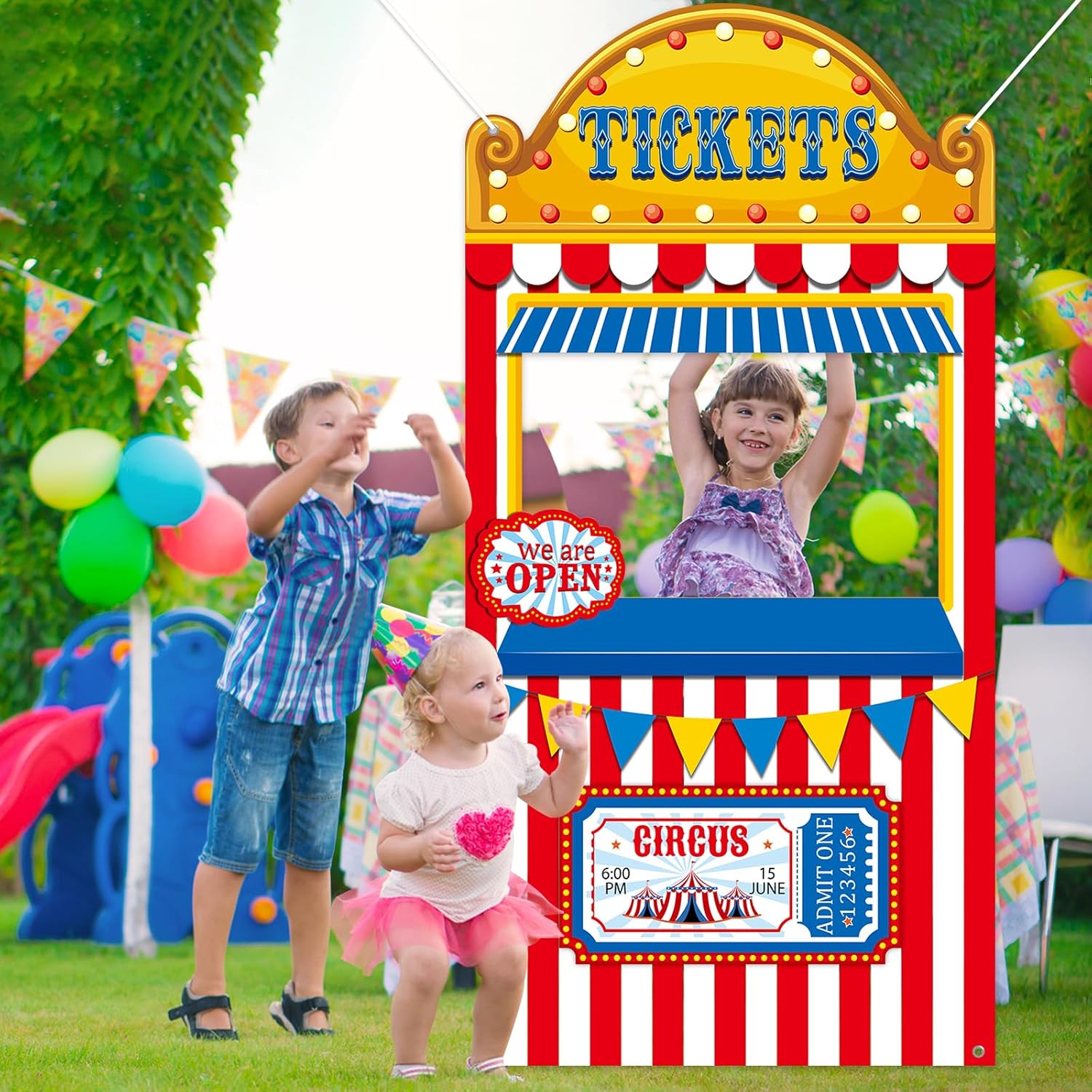 Classic design: Our carnival photo booth props are designed in ticket booth shape and printed with various color with vivid patterns, which creates a joyful atmosphere, unique circus theme party decorations makes everyone can’t wait to get close enough to take a photo.