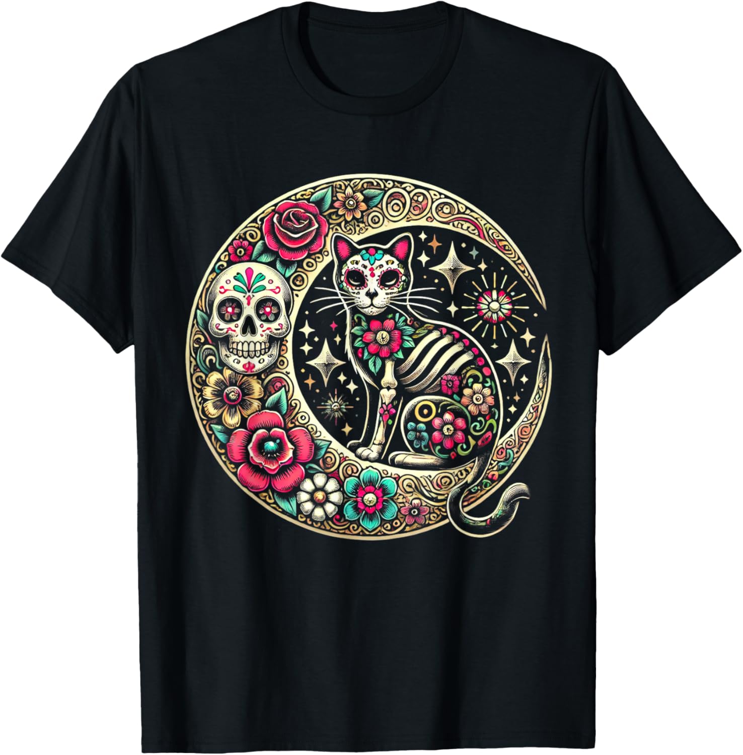 Manufacturer                                                                        :                                                                        Day of Dead Sugar Cat Skeleton Skull tee for all