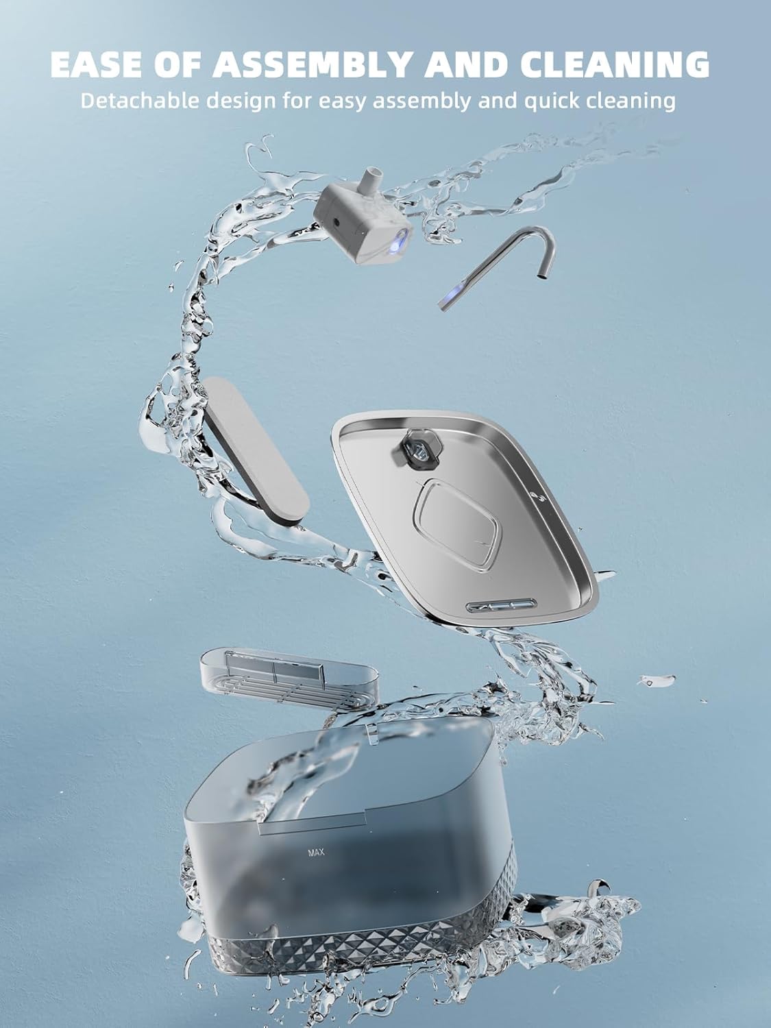 304 Stainless Steel Top: MAILOFY cat water fountain is made of high quality dishwasher-safe stainless steel faucet and water tray, which is BPA-free, durable, safe and easy to assemble and clean.