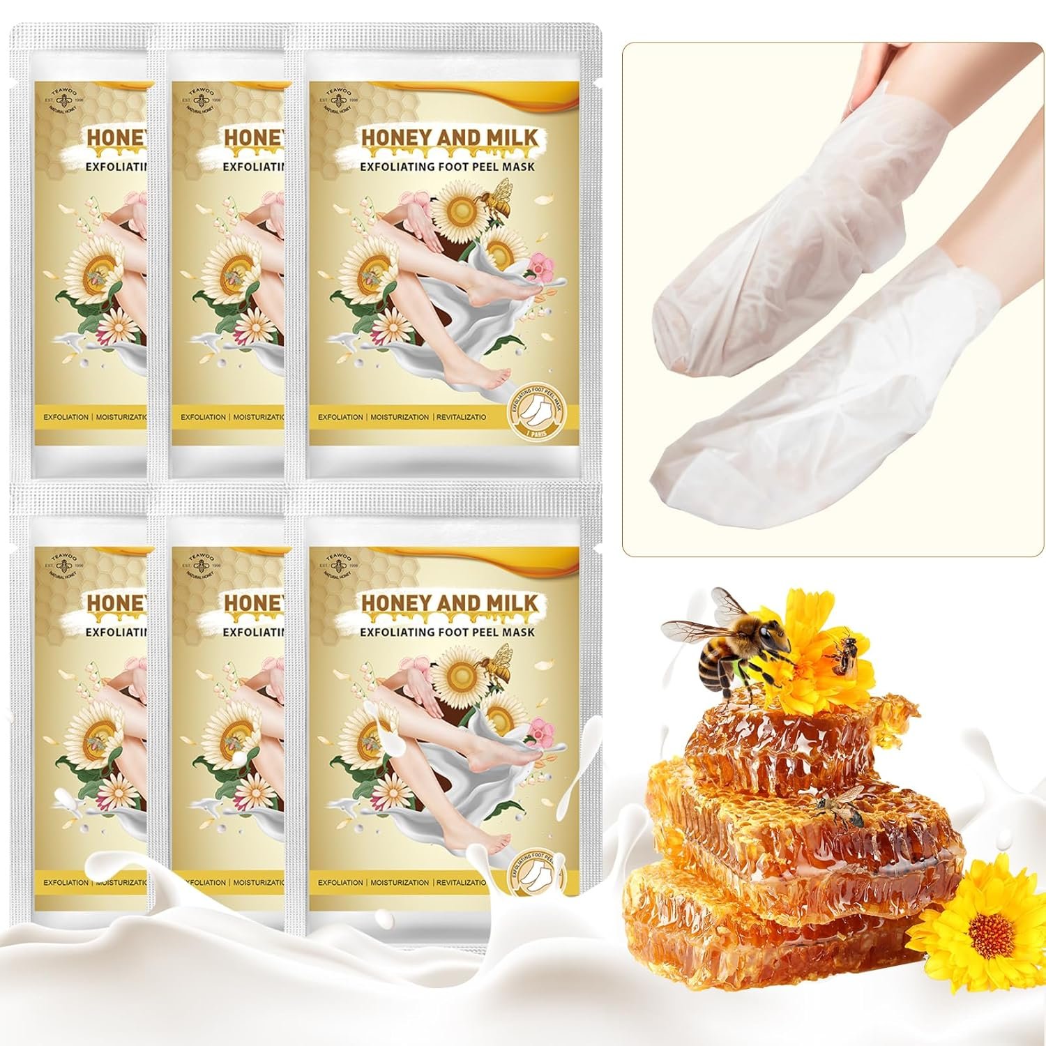 Foot Peel Mask 6 Pack, Milk & Honey Exfoliating Foot Masks, Foot Mask…