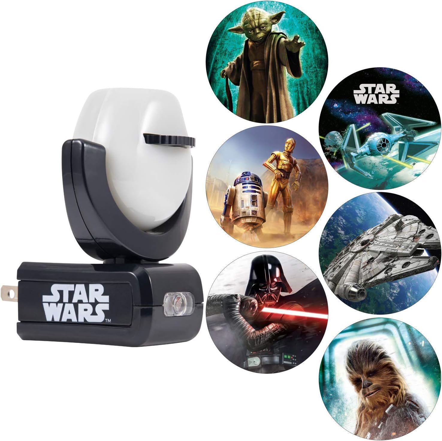 Price: (as of - Details) Find yourself in a galaxy far, far away with the Star Wars 6-Image Projectables Night Light. Designed for fans of the iconic movie franchise, the plug-in night light’s rotating gray globe emits a soft glow in your room while projecting a colorful 3ft. image onto