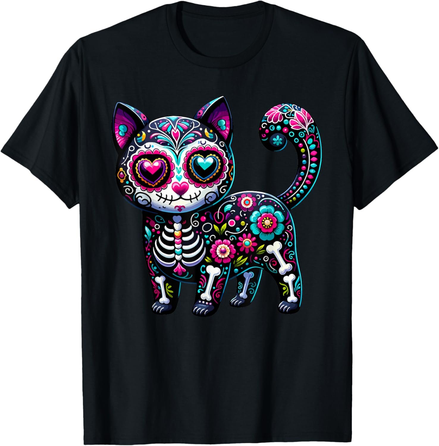 Dia De Los Muertos Cinco De Mayo Cat Sugar Skull Men Women T-Shirt