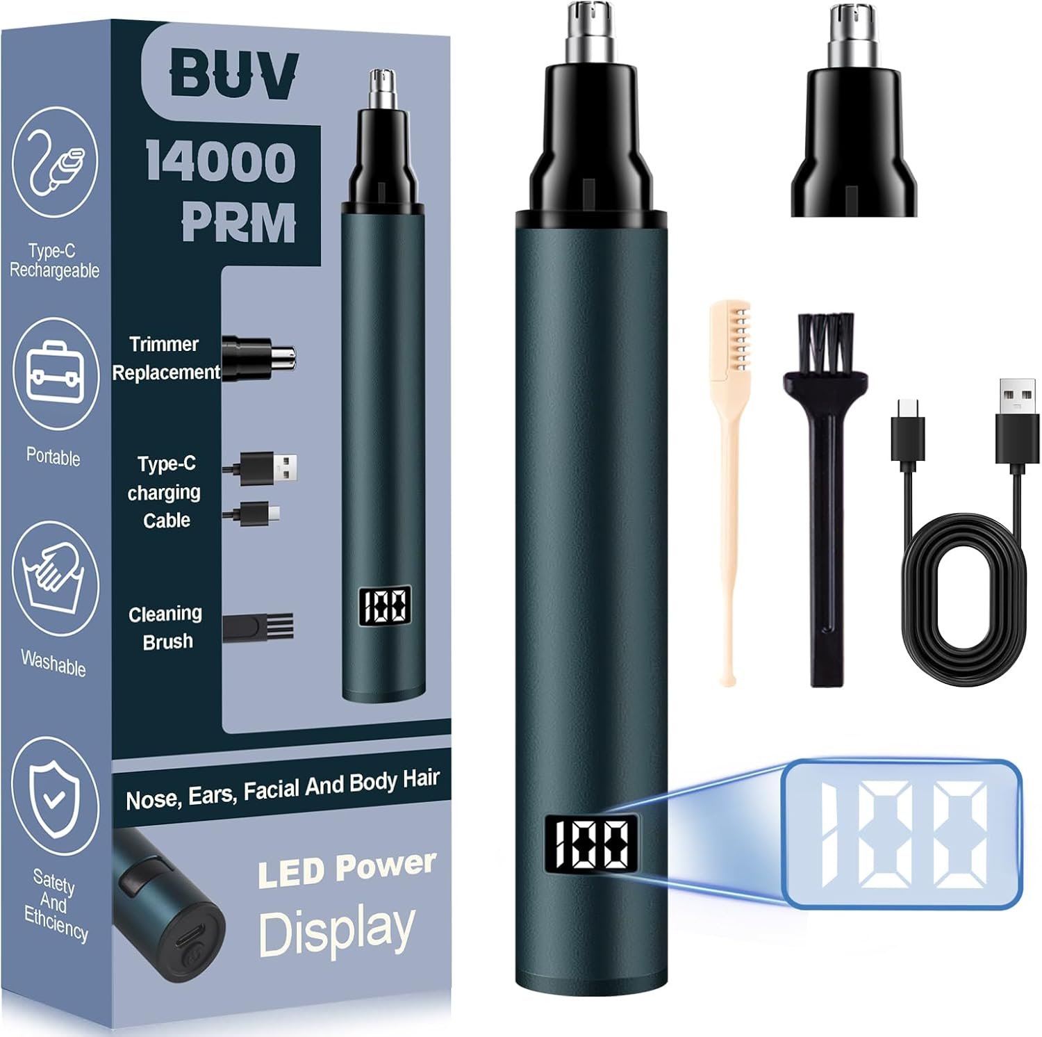 Price: (as of - Details) The 3 in 1 Deluxe Lighted nose trimmer for men gives you three interchangeable heads and a mini spotlight. Our precision detail attachment head painlessly & efficiently removes unwanted hairs around the ears and eyebrows. The reciprocating eyebrow trimmer attachment head easily trims small detail areas around