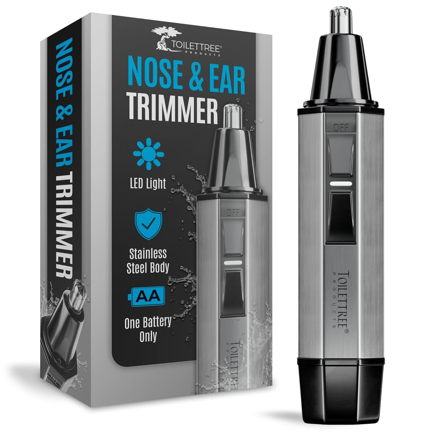 ToiletTree Products Nose Hair Trimmer with LED Light – Stainless Stee…