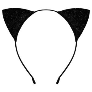 Cat Ears Headband for Women Girls, Halloween Cosplay Cat Costume Hair Accessories for Adult Kids Black