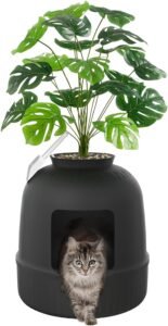 Lifewit Litter Box Cat with Faux Plant & Scoop, Hidden Enclosure Litter Tray with Odor Control & Carbon Filter in Living Room, Bedroom, Corner, Black