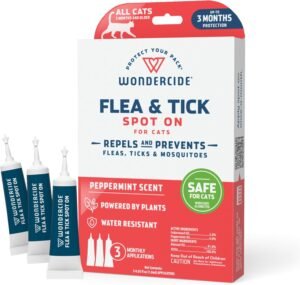 Wondercide – Flea and Tick Cat Spot On – Flea, Tick, and Mosquito Repellent, Prevention for Cats with Natural Essential Oils – Pet and Family Safe Up to 3 Months Protection – 3 Tubes of 0.03 oz