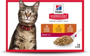 Hill’s Science Diet Adult 1-6, Adult 1-6 Premium Nutrition, Wet Cat Food, Variety Pack: Turkey; Chicken; Turkey & Liver Minced, 5 oz Can Variety Pack, Case of 12