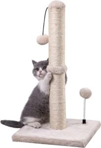 MECOOL Cat Scratching Post Premium Basics Kitten Scratcher Sisal Scratch Posts with Hanging Ball 22in for Kittens or Smaller Cats (22 inches for Kitten, Beige)