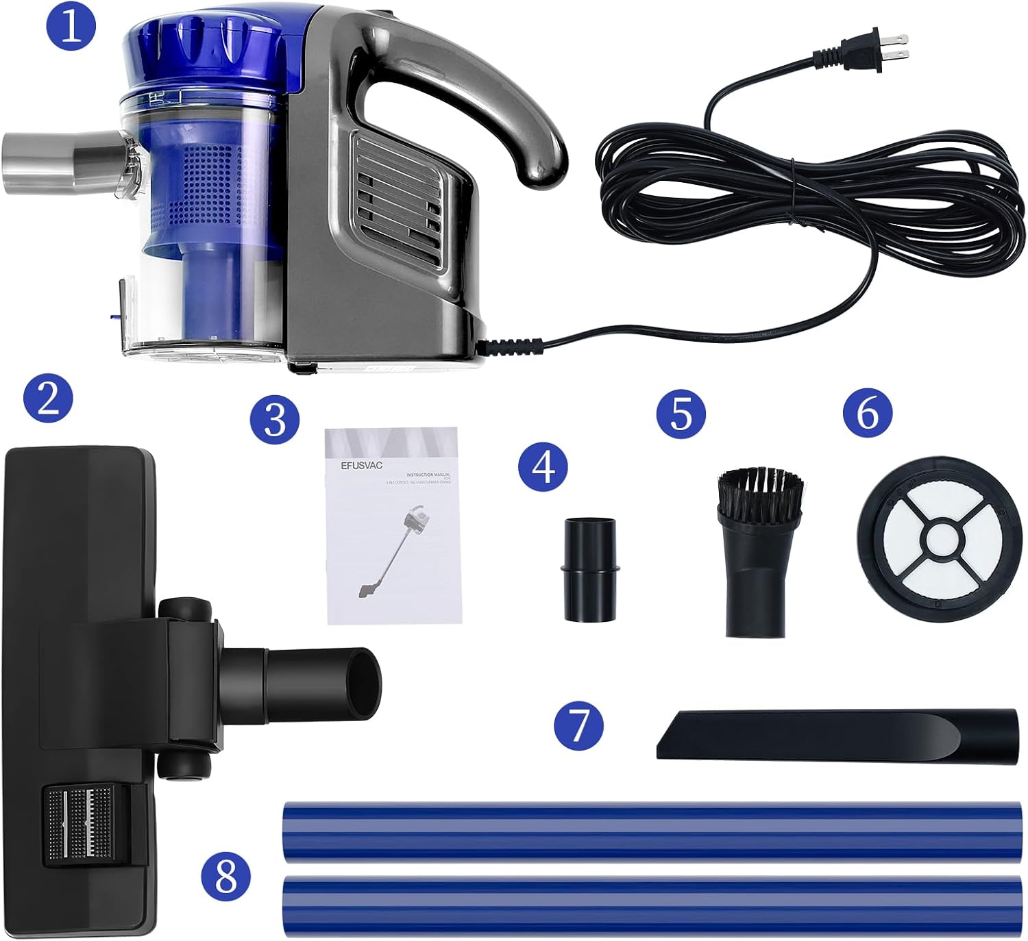 ▶【Lightweight】: The main motor is 3.9 pounds and the ergonomic handle allows use with just one hand. More convenient use for the elderly, children, and pregnant women. The corded stick vacuum can easily convert to a portable handheld vacuum for convenient above-floor cleaning, reaching tight spaces, stairs, and even car interiors.