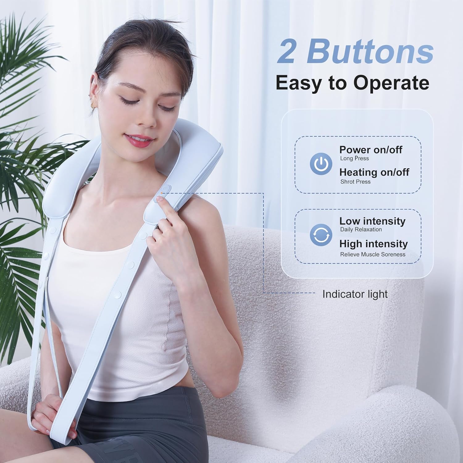 Simulate a real massage: Figure eight-shaped pressing and kneading massage with heat, engineered with 4 ergonomic massage nodes, it providing continuous and powerful massage pressure to provide your neck and shoulder with the comfort it deserves