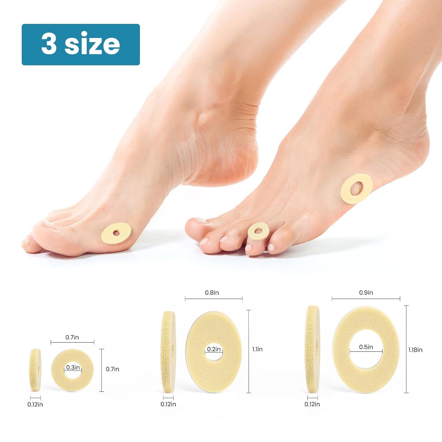 【What You Get】You will receive a total of 45 corn pads (3 sheets), including 15 pieces of large size oval foam, 15 pieces of medium size oval foam, and 15 pieces of small size round foam callus pads. These are enough to meet your daily use and replacement needs, helping relieve the pain and pressure on your feet.