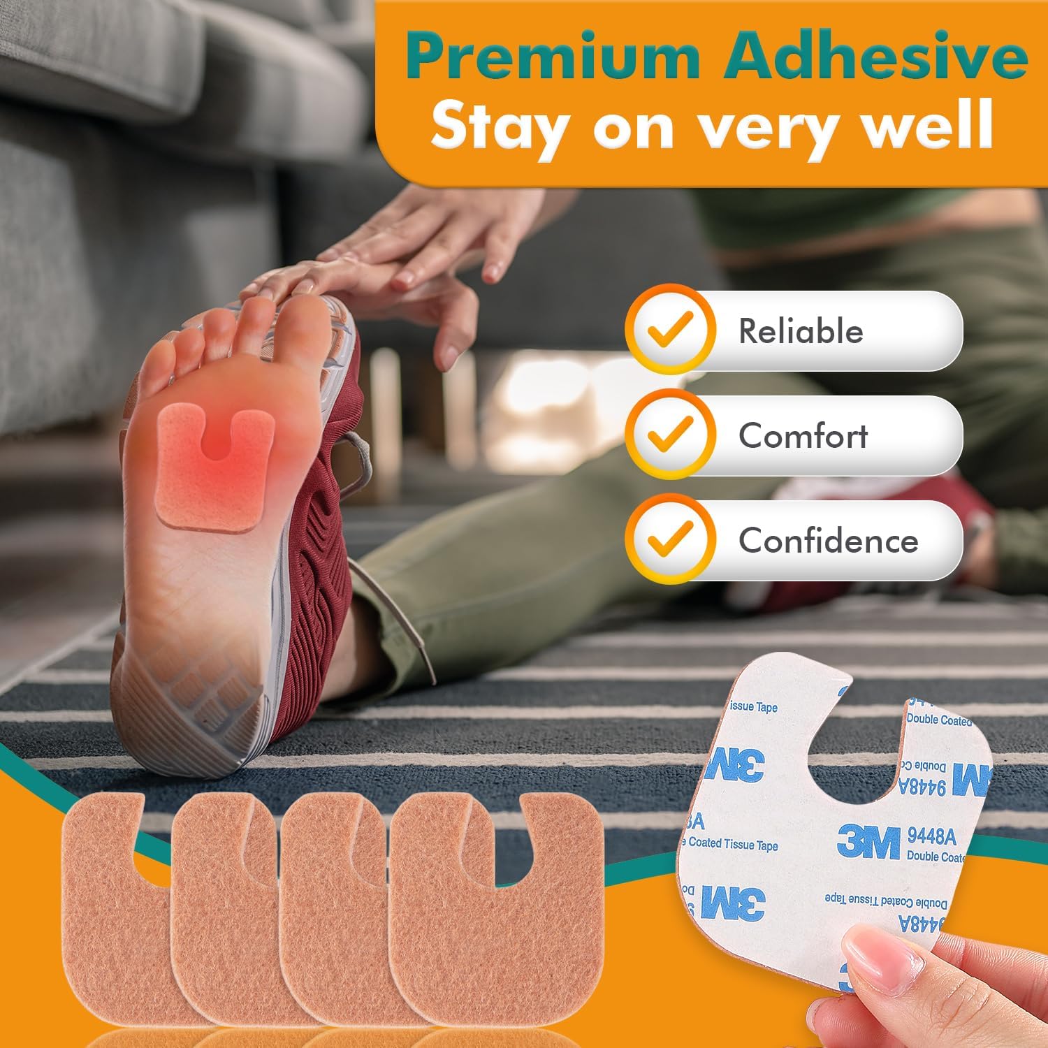 Outstanding 3M Adhesion: Built to withstand your active lifestyle, our forefoot pads are highly adhesive. They will not let you down when you need it most
