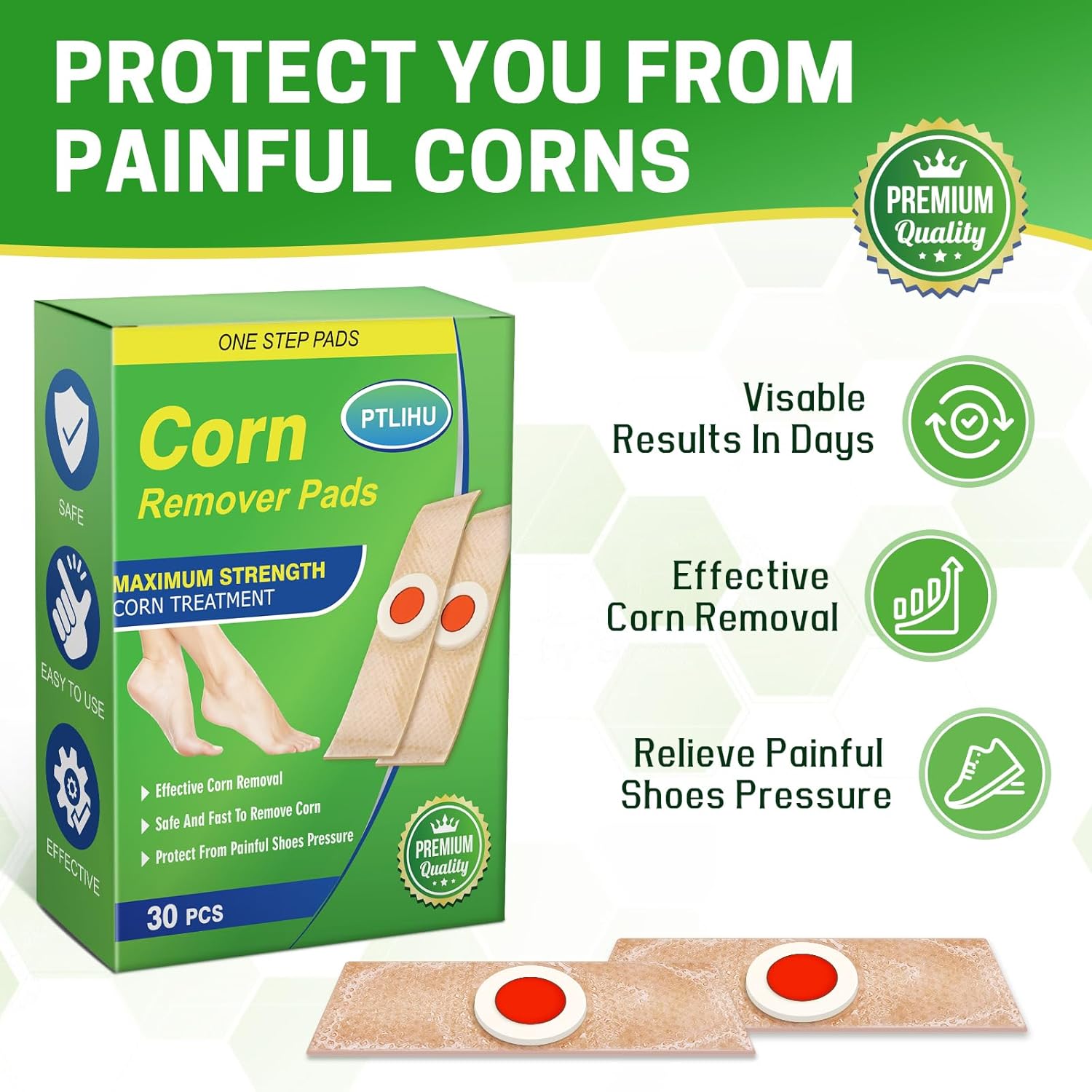 30-Pack Corn & Callus Remover for Feet & Hands Our corn removers for toes use traditional ingredients. The active salicylic acid is effective, safe, and fast to remove corn & callus. The pads are soft enough to protect from painful shoe pressure. Provide you with a comfortable day. How To Use: 1. Clean and dry the affected area. 2. Place the patch over the corn. 3. Apply the PU adhesive bandage on the pad. 4. Apply it 2 times daily until corn is removed. WARNINGS: 1. Only use on corn, but not healthy, broken, or infected skin. 2. If this product causes an allergic or adverse reaction, discontinue use immediately and seek medical advice. 3. Keep this product away from children.