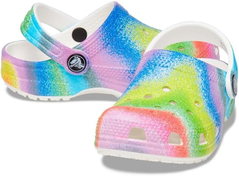 Timeless, fun and full of peaceful good vibes, the bright pops of tie-dye graphics on these clogs are the perfect way to help your little one make a groovy style statement. Grounded in comfort, spiked with personality. From the playground to family outings, they’re ready to rock wherever the kids choose to roll.