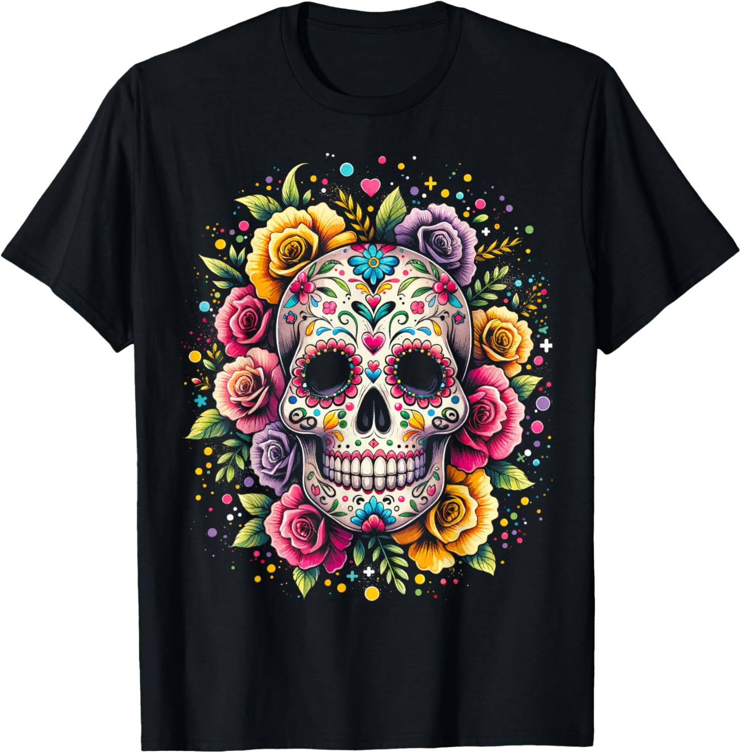 Sure to be a hit on Halloween or day of the dead celebrate in style with this cute floral sugar skull top for women. Makes a great Dia De Muertos party top. Share your love of day of the dead with this floral sugar skull Dia De Muertos.